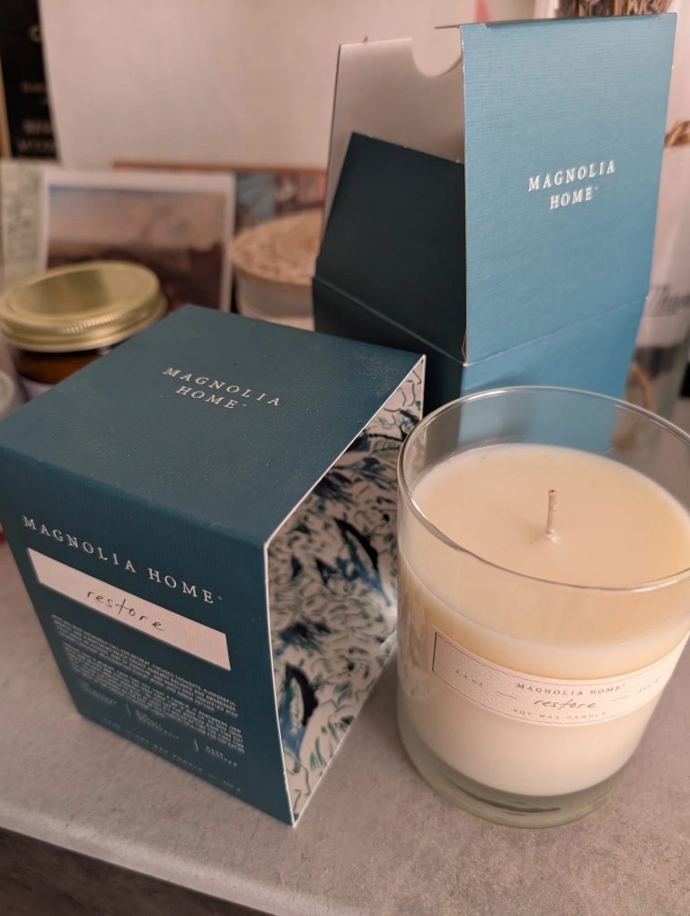 Selling a Magnolia Home Restore soy wax candle! It comes with the original box. This 9.2 oz candle burns for 46 to 64 hours. Top notes: Heliotrope, lavender Mid notes: Neroli, grapefruit Base: Vetiver Available to purchase individually or as a lot with other listings.