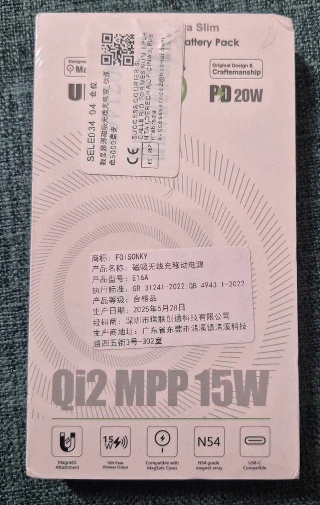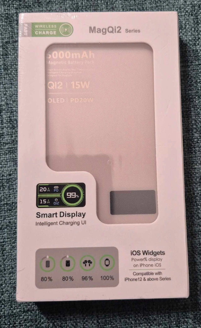 122I'm offering a new Magqi2 Series 5000mAh Magnetic Battery Pack. This ultra-slim battery pack features a smart display and is compatible with iPhone 12 and above. It supports wireless charging at 15W and PD20W for fast charging. Perfect for those on the go who need extra battery life! It's so new, it's still in the box! Specifications: * Capacity: 5000mAh * Wireless Charge: 15W * PD20W fast charging * Smart Display * Magnetic Attachment * Compatible with iPhone 12 & above Series Pickup in Brampton near Sheridan college Davis campus