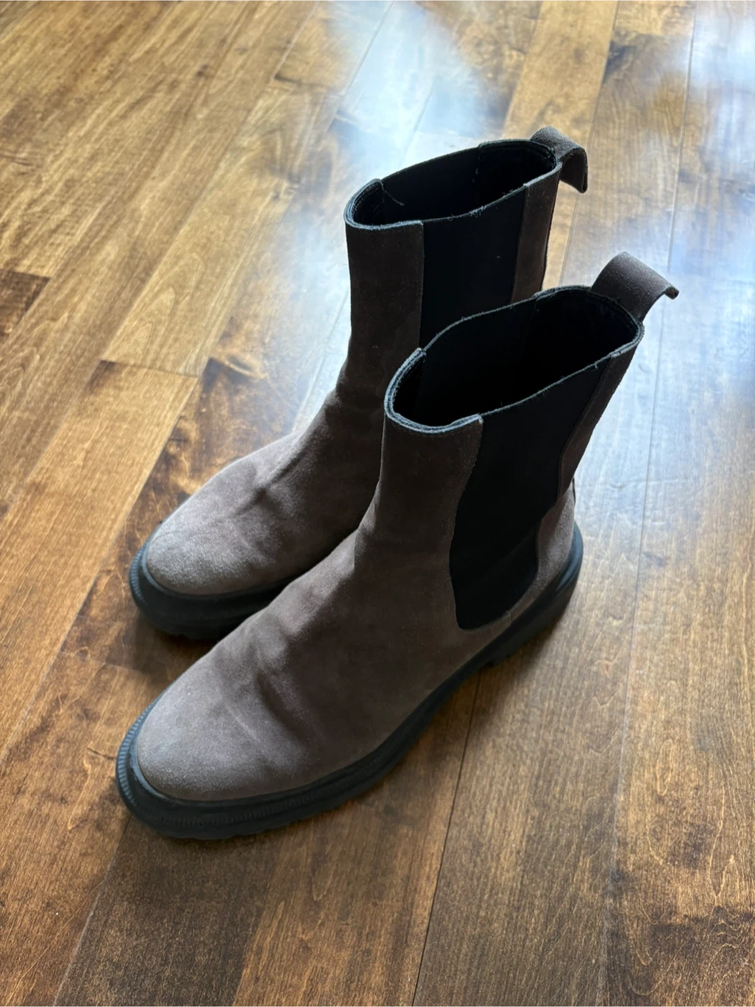 10Selling a pair of stylish brown suede Chelsea boots! They're in great condition and perfect for everyday wear. The boots have a comfortable fit and a classic look that goes with just about anything