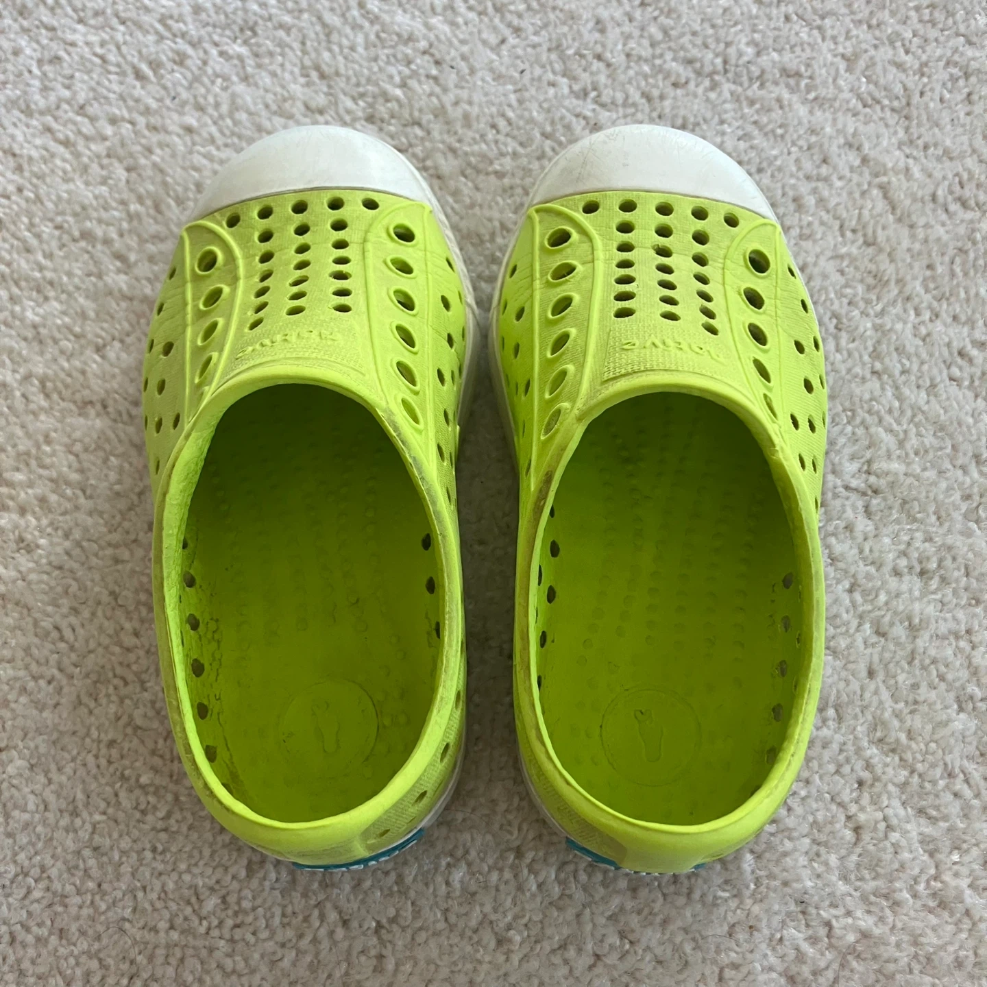 Good condition Native Jefferson shoes. Easy to slip on for kids! Show some signs of wear, but still lots of life left.