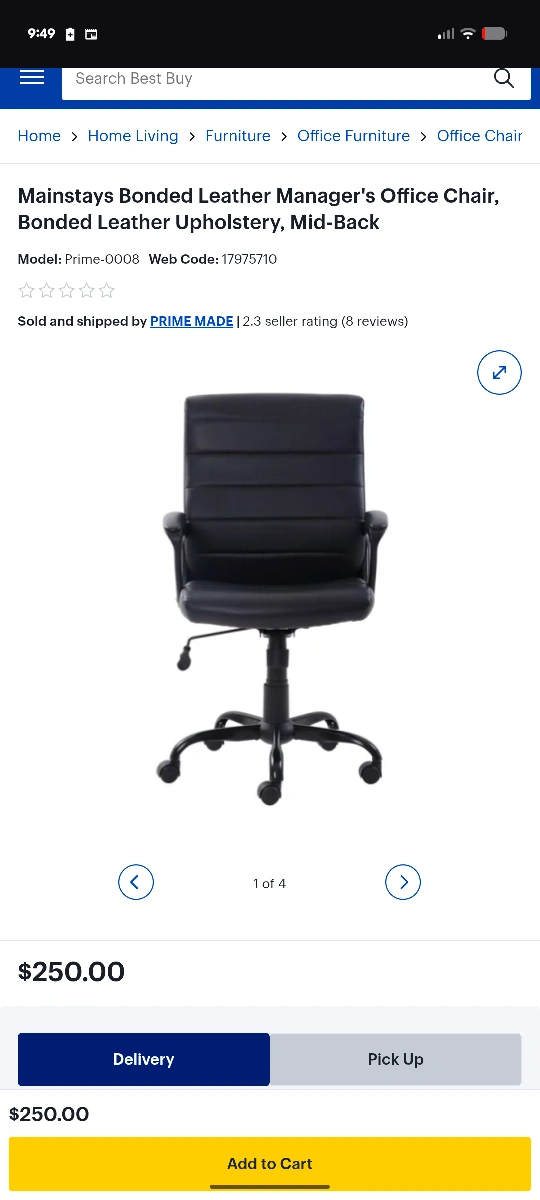 299Selling a Mainstays Executive Desk Chair in great condition! It features a bonded leather seat and back for comfort. The chair has a durable metal base and dual black casters for easy movement. The memory foam seat adds extra support. Comes with the original box! Bought a few months back & barely used. It's price when i bought was 149$.