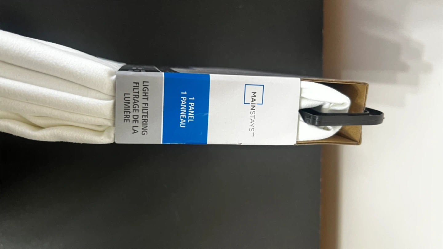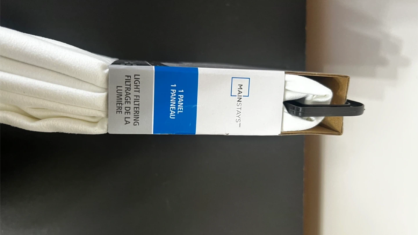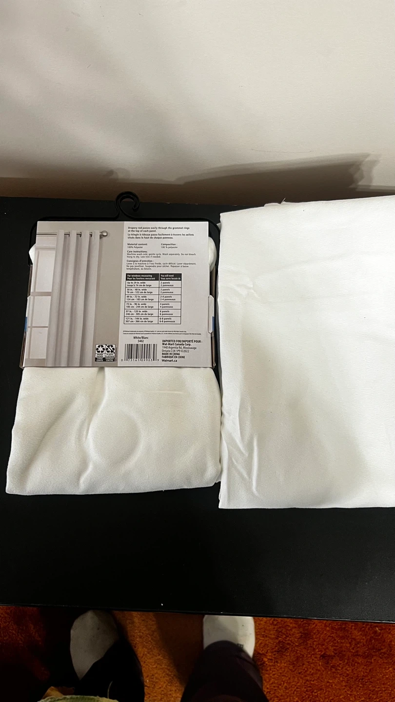 10Selling a Mainstays Faux Suede Grommet Panel curtain in white! It's 54 x 63 inches in length and machine washable. Colour white The material is light filtering and provides 100% blackout.