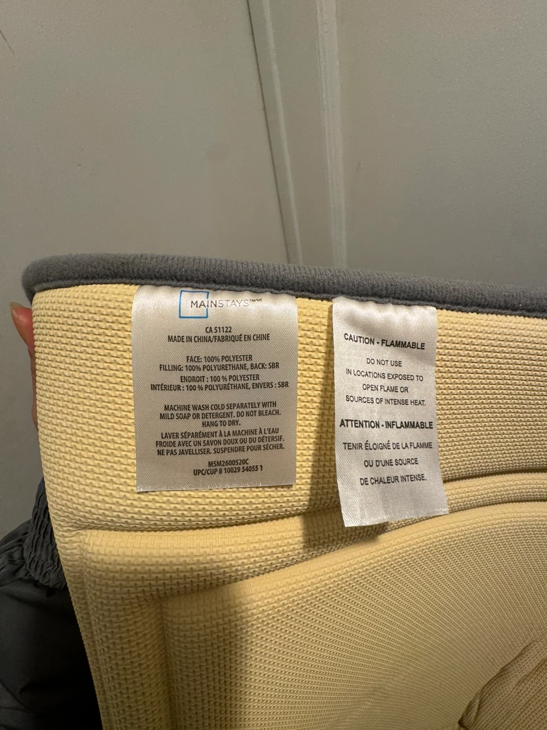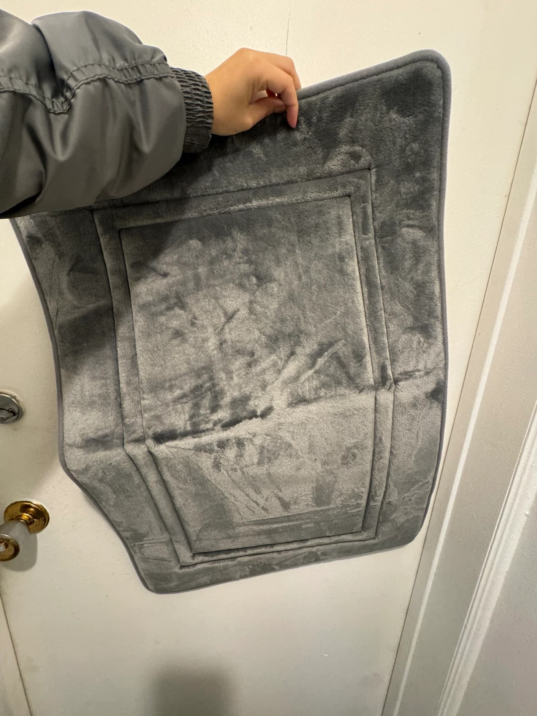 Selling a Mainstays bath mat in grey! It's made with 100% polyester face and filling, and the back is SBR. It's ready for a new home