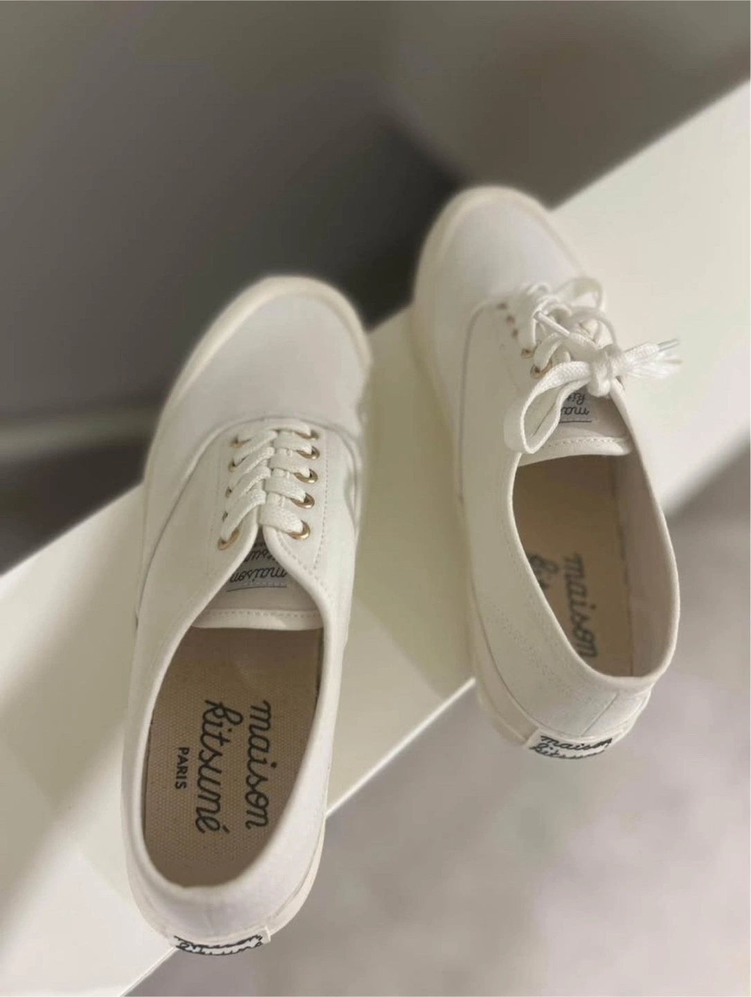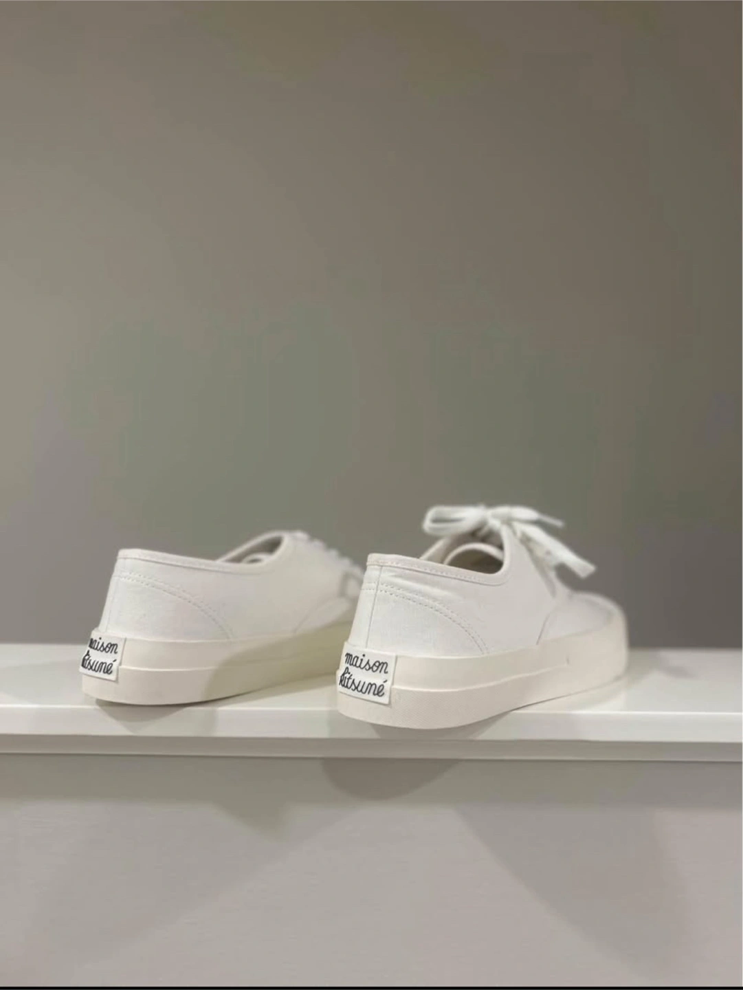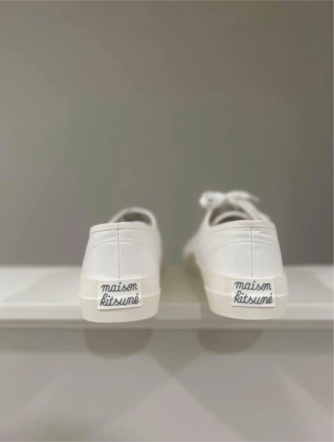 These Maison Kitsuné sneakers are brand new! They're a classic, clean style that goes with everything. The canvas material is durable and comfortable, and the subtle logo adds a touch of Parisian cool to your everyday look