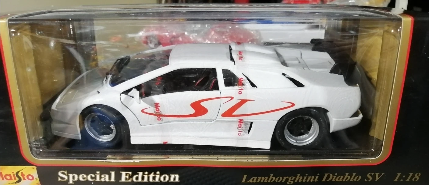 Selling a Maisto Special Edition Lamborghini Diablo SV in 1:18 scale. It's in its original box, perfect for collectors!