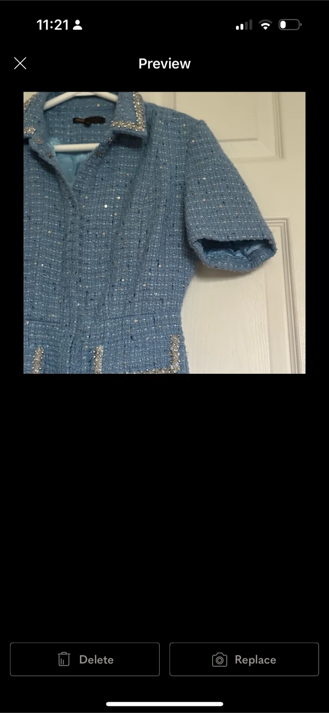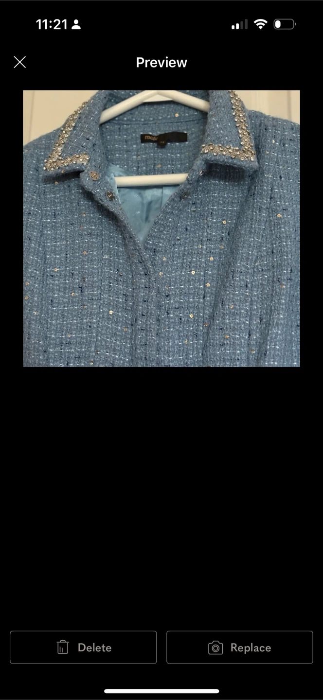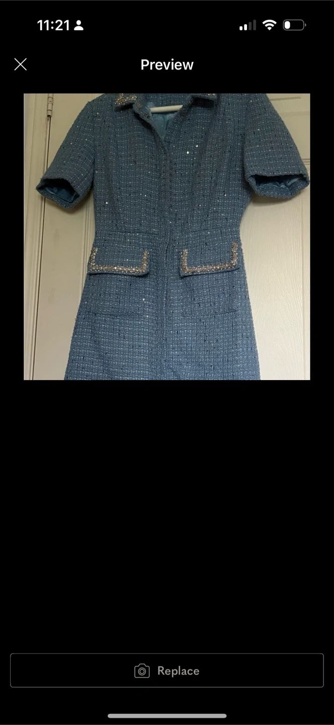 86Selling a cute Maje dress! It's a lovely blue tweed material and size 34. Perfect for a stylish and chic look!