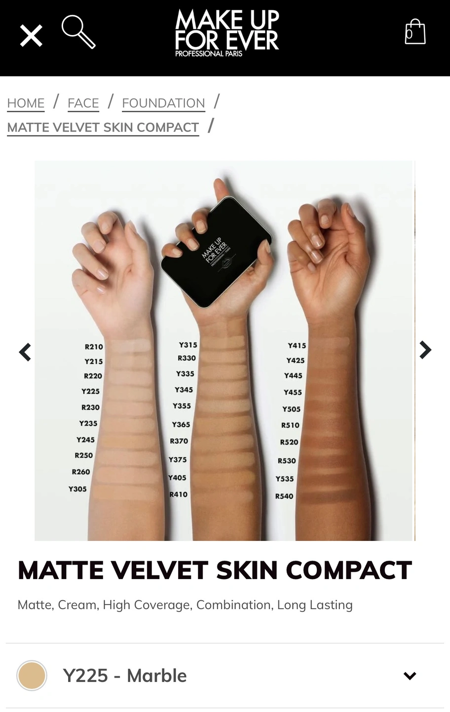Make Up For Ever Matte Velvet Skin Powder Foundation Y225