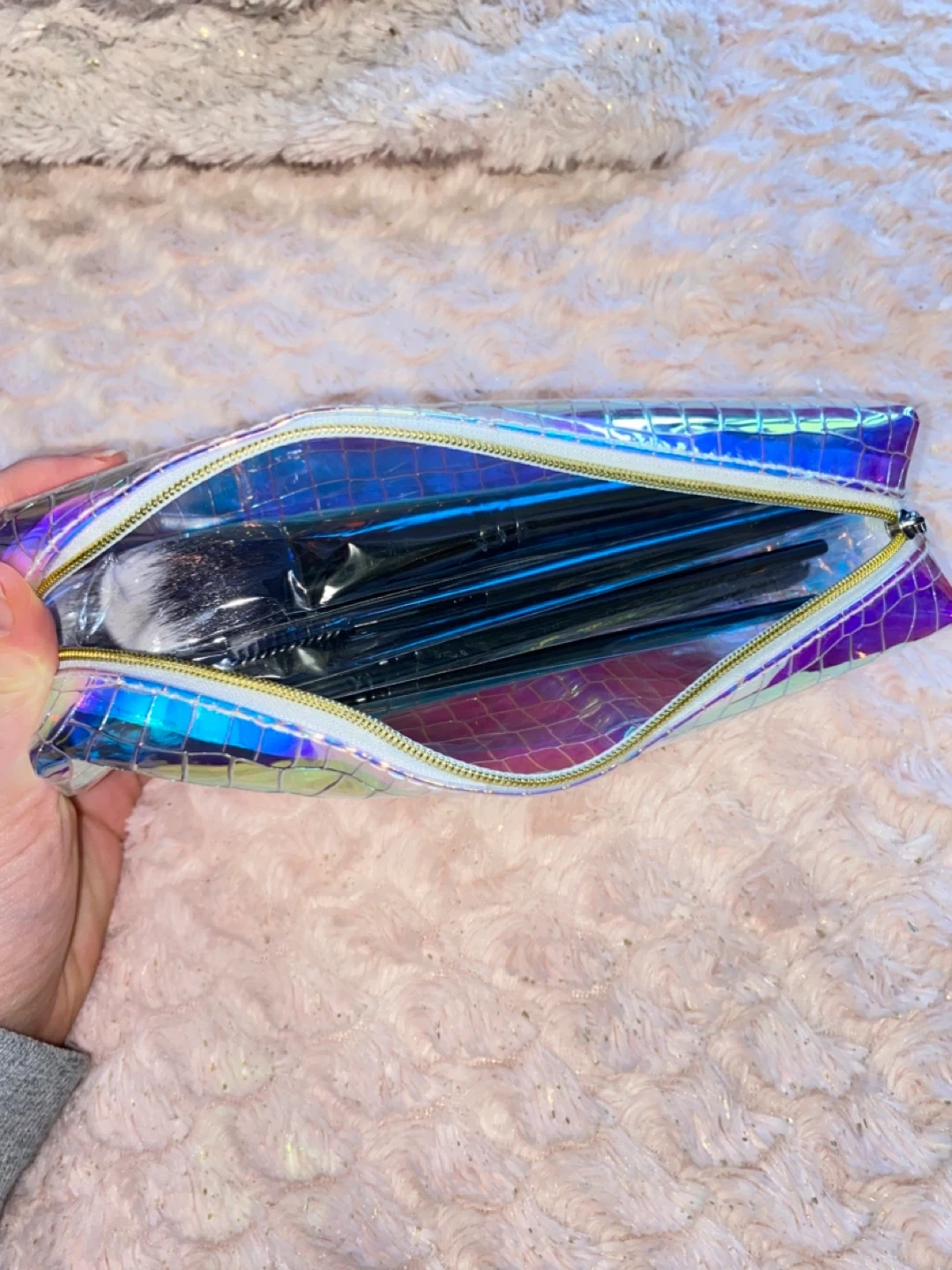 15Selling a set of makeup brushes in a super cute holographic case! Perfect for travel or keeping your brushes organized at home. Brand new