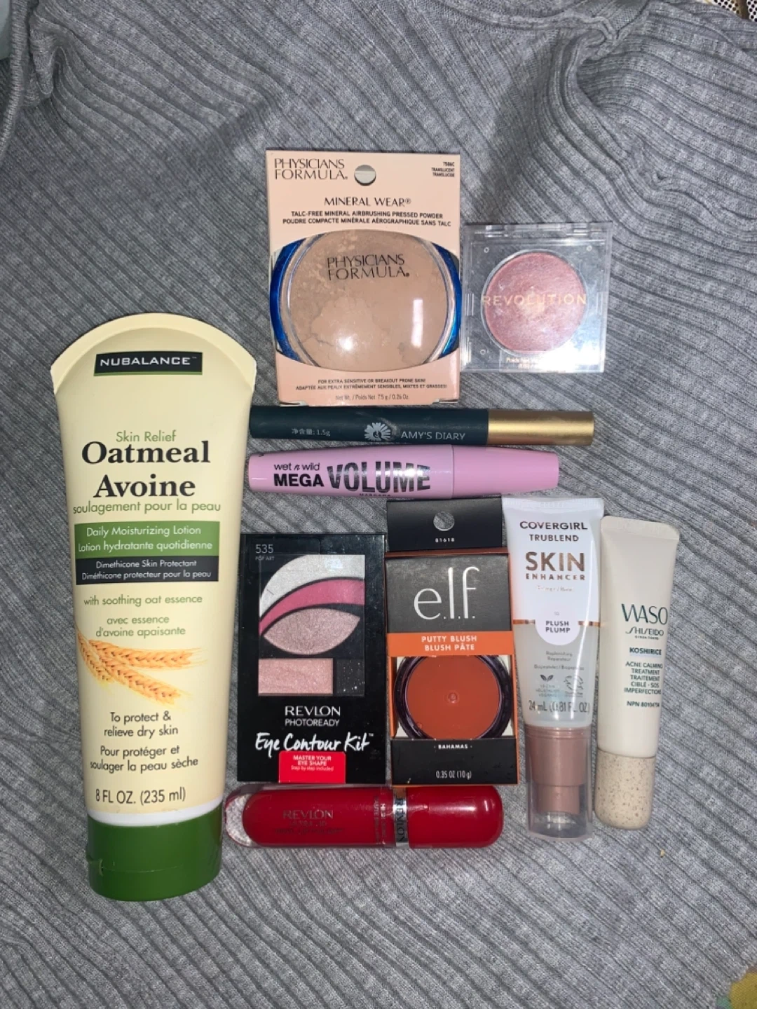 212Selling a makeup bundle with a variety of beauty items! Individual items for 8$ Price for bundle is: 30$ Bundle Includes: - Physicians Formula Mineral Wear powder - Revolution Highlighter - Wet n Wild Mega Volume mascara - e.l.f. Putty Blush in Bahamas - Revlon Eye Contour Kit - Revlon Ultra HD Vinyl Lip Polish - Nubalance Oatmeal Avoine 8 fl oz lotion - Covergirl TruBlend Skin Enhancer - Waso Shiseido Acne Calming Treatment Location: Bayly and Liverpool, Pickering