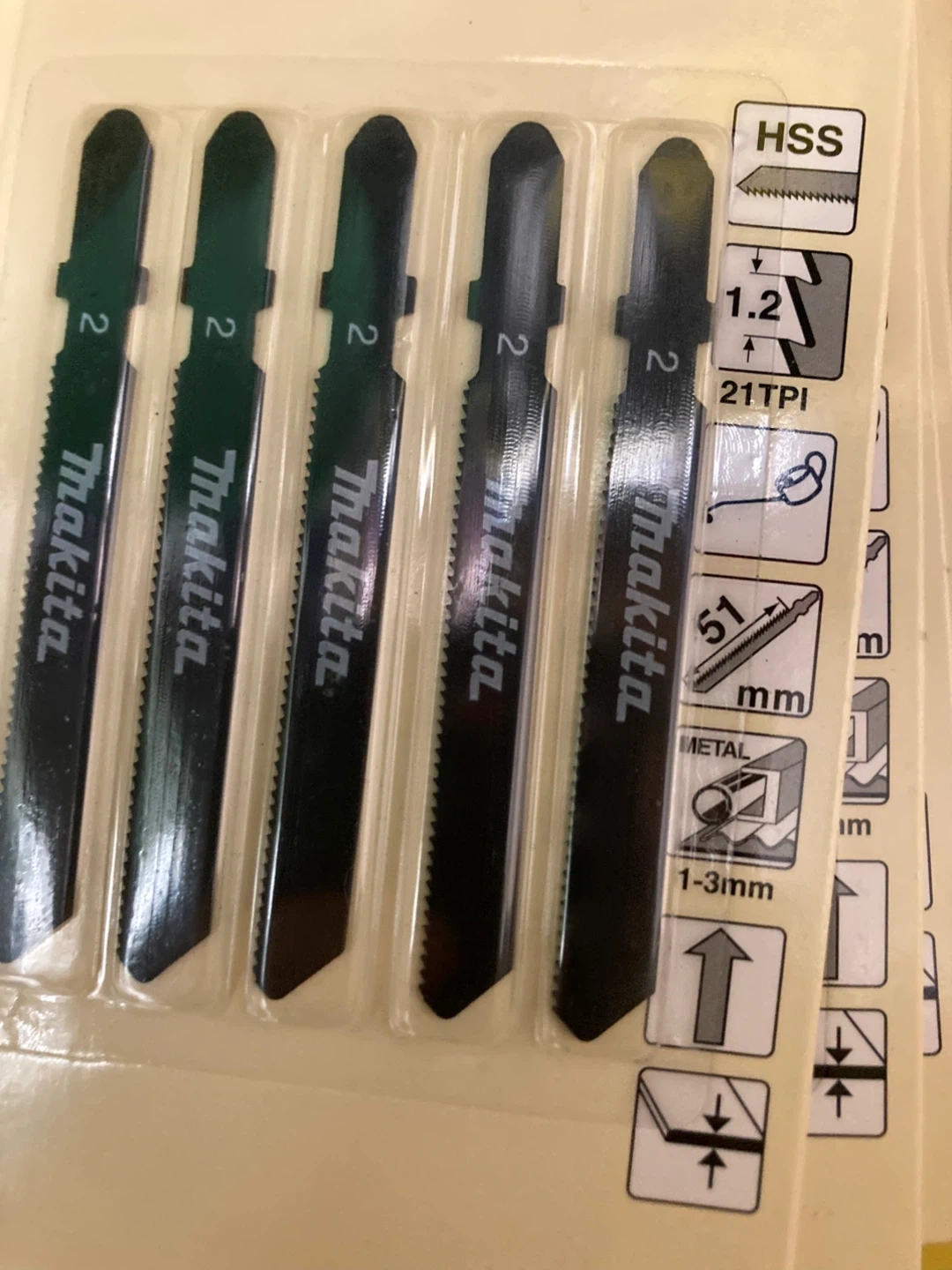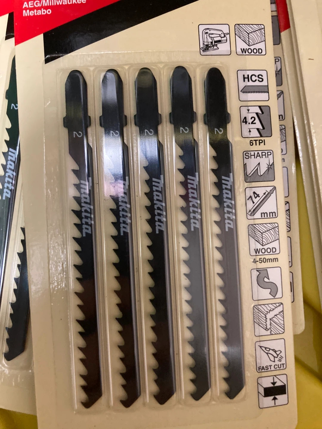 These are brand new never been used and still in sealed factory packaging Makita Jigsaw blades. There are packs of metal cutting blades and packs of wood cutting blades. These are packs of 5 blades which are $20 in store but only asking $5ea firm
