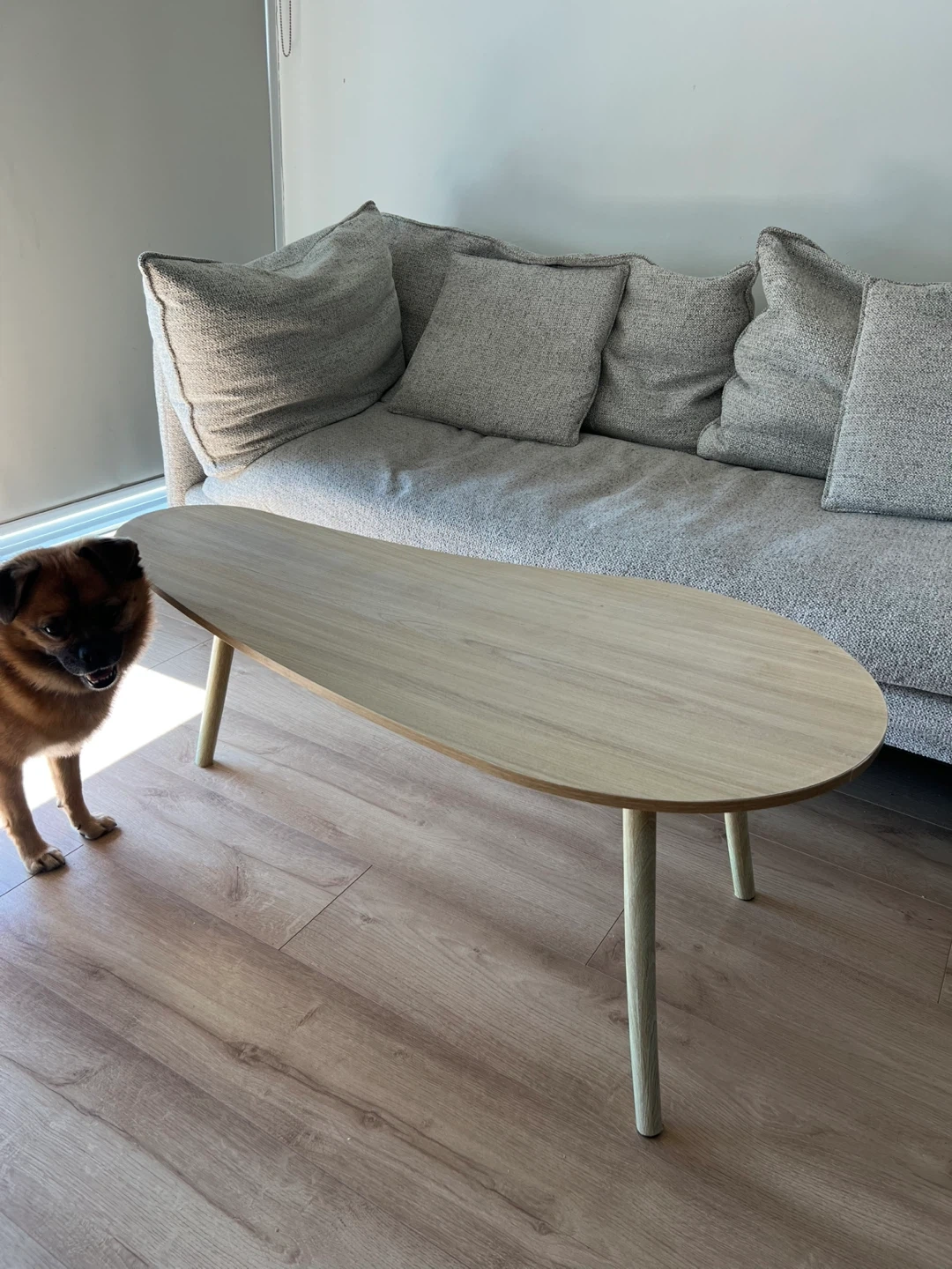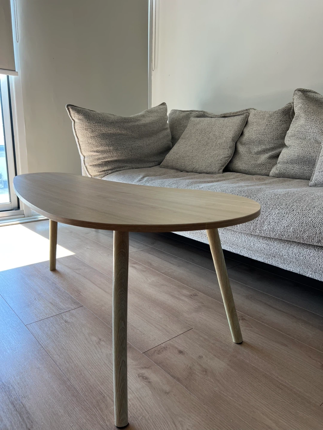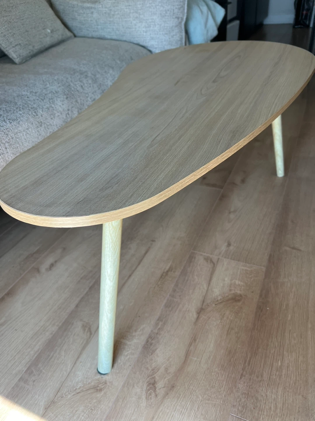 Selling totally NEW and not used mango shaped coffee table (I bought 2 tables by mistake, so one we are using and it is super nice, another one is unpacked and waiting for its owner)! It's a unique and elegant shape that would look great in any living room. The table measures approximately 100cm in length and 50cm in width, with a height of 41cm. It's in great condition, you will get it packed and ready for a new home. It has 3 legs and very easy to assemble. Top material: Solid + manufactured wood Base material: Solid + manufactured wood
