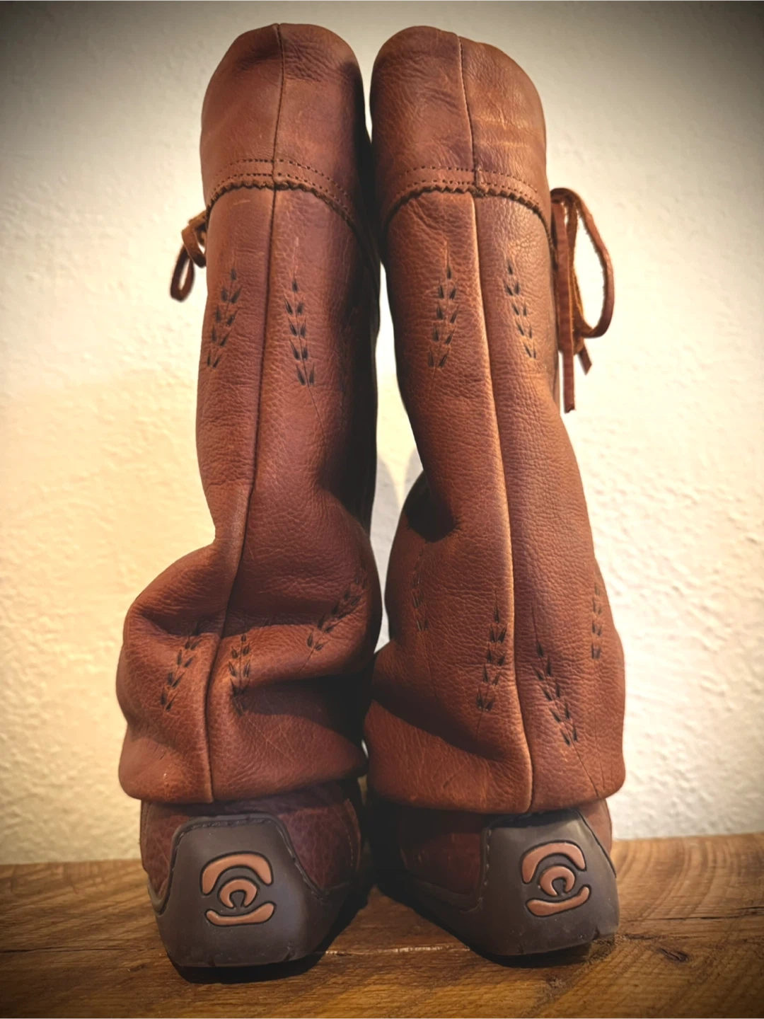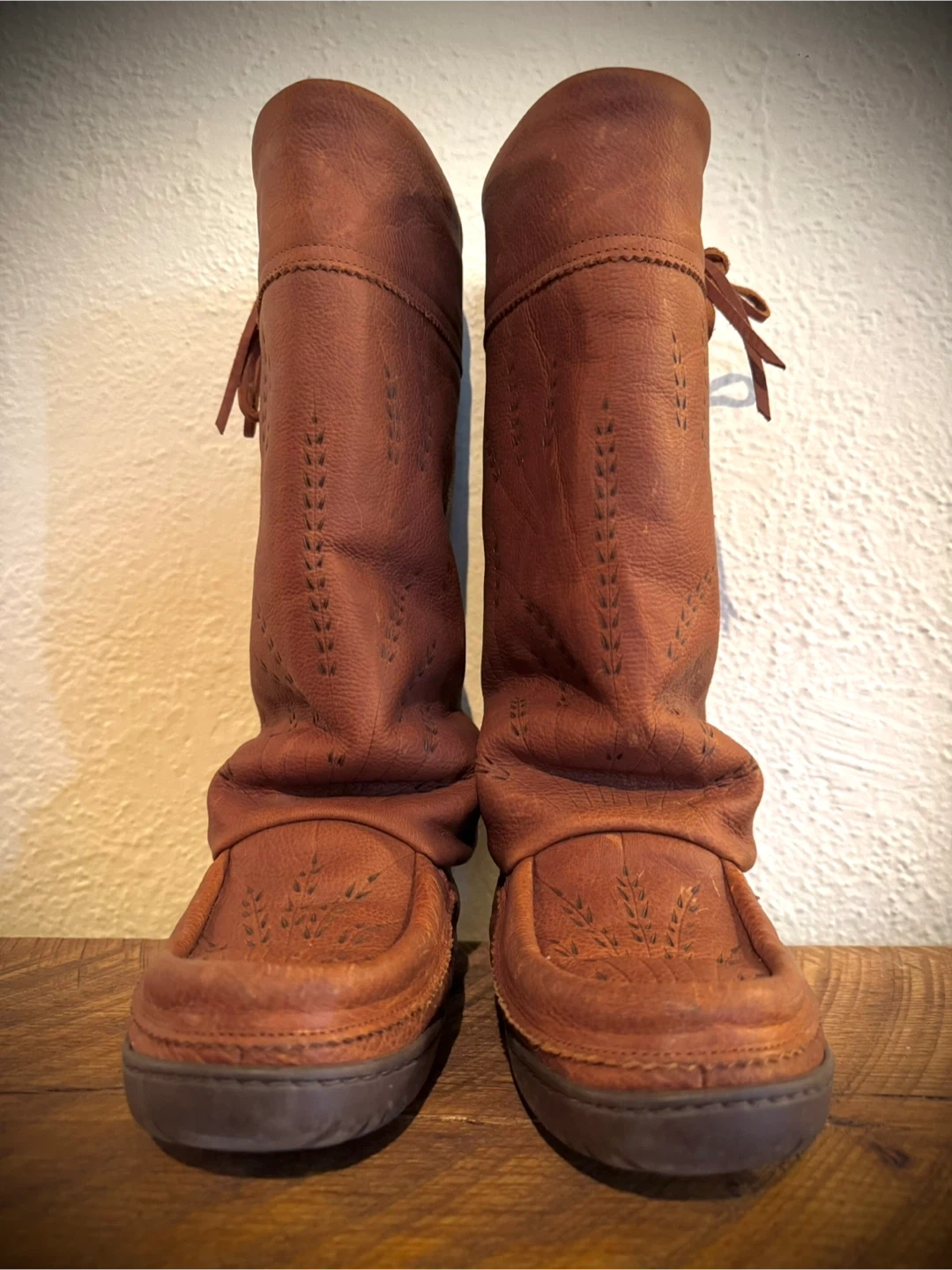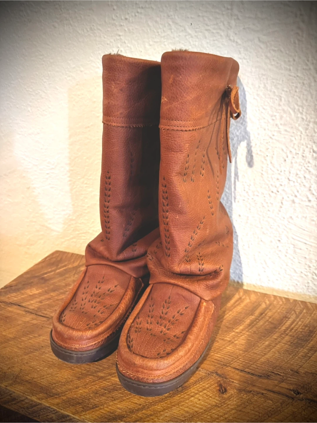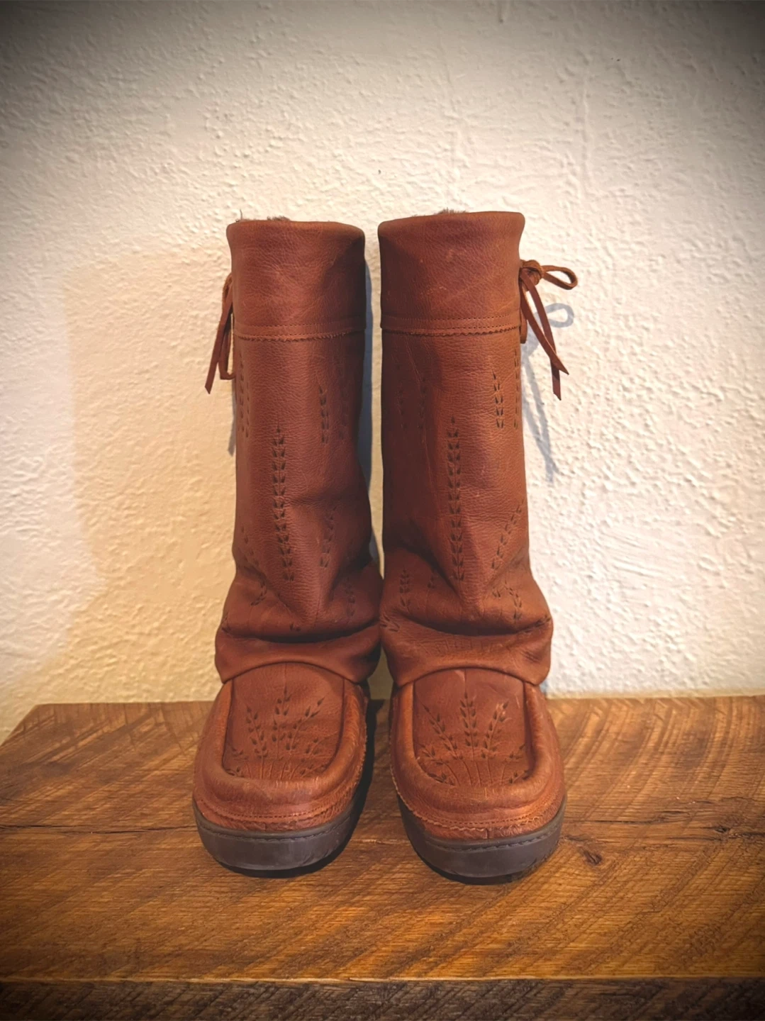 65❄️ Description: Bring warmth and elegance to winter with these Manitobah Gatherer Tall Waterproof Mukluks — a timeless Canadian classic designed for deep cold and city slush alike. Made with full-grain waterproof leather, a fleece-lined 15” shaft, and a sheepskin-lined footbed, they keep you cozy to –32 °C while still feeling incredibly soft and light. The AuthenTEC Waterproof System ensures dry feet through every storm, while the hand-etched grass pattern and drawstring detail add a touch of beauty that only gets richer with time. Perfect for Toronto winters, holiday strolls, or gifting someone you really love. 🎁 Worn only once — excellent condition!