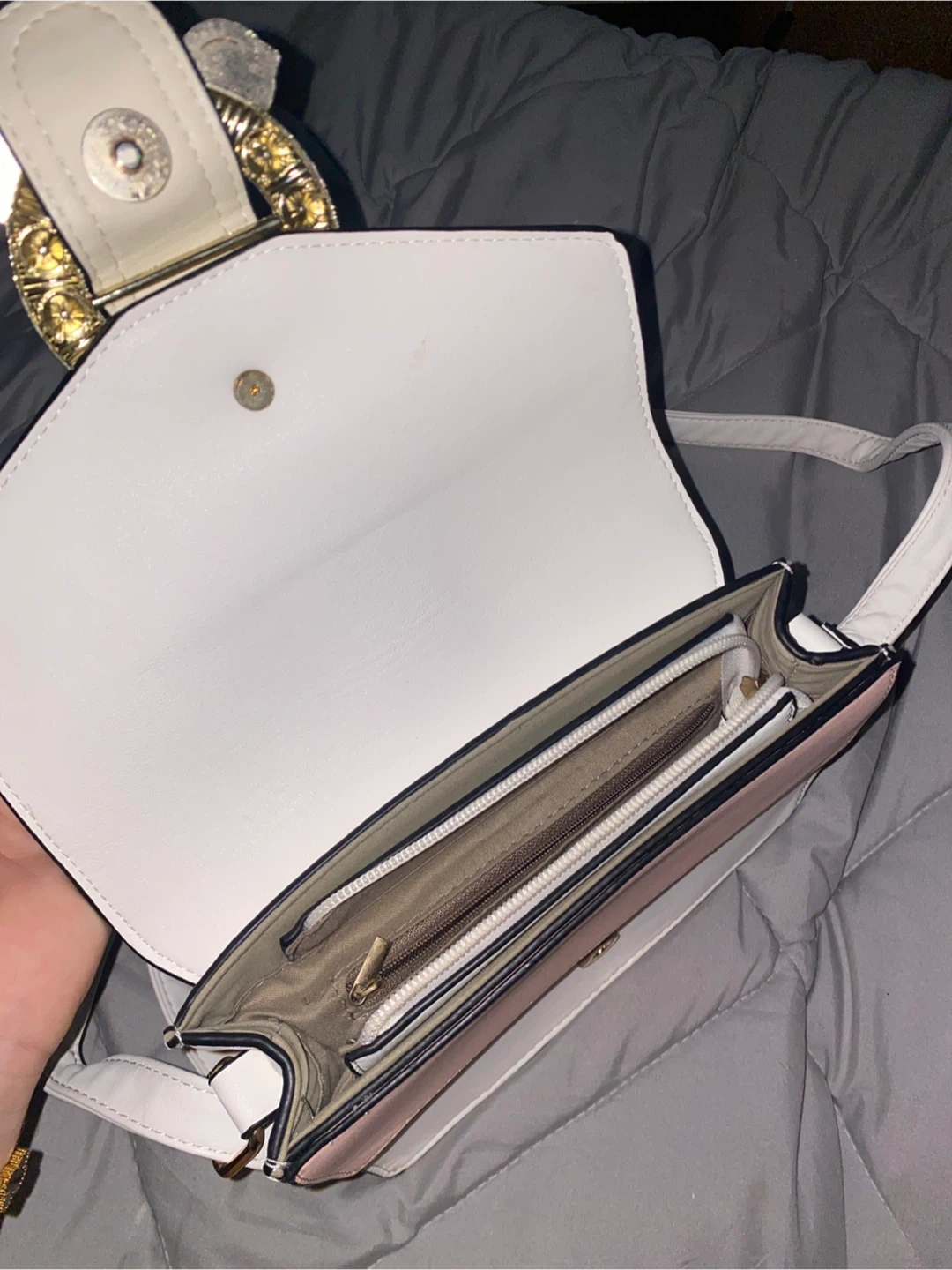 White and pink crossbody purse