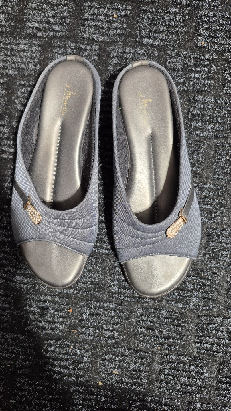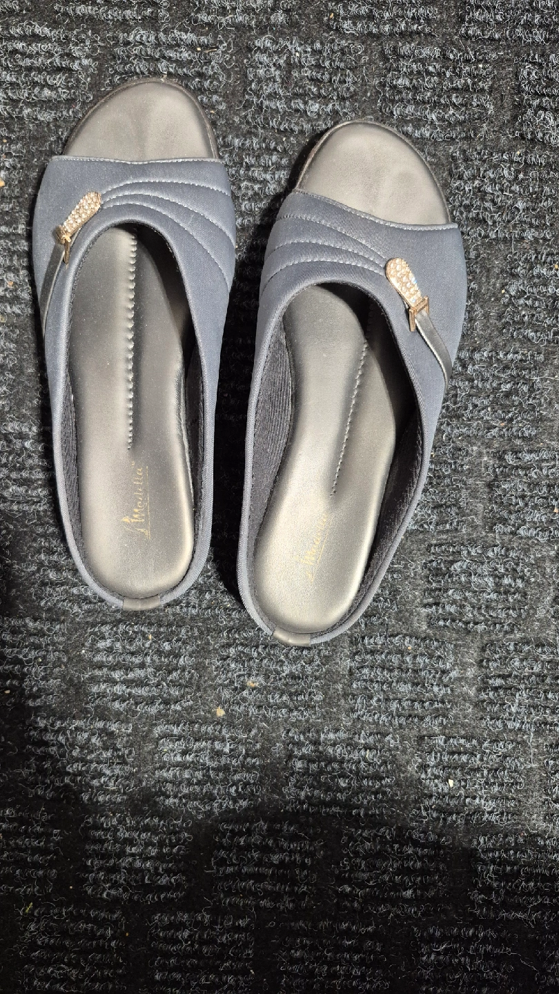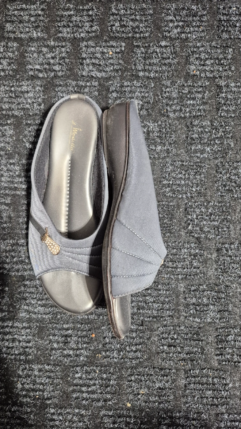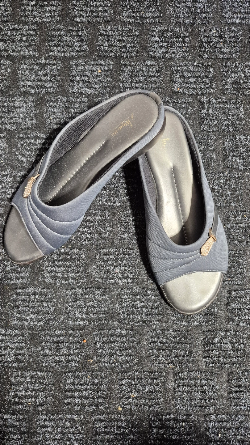 Selling a pair of Manolita slides in size 40. They are grey and in good condition. They have a small decorative detail on the side. cash only please.