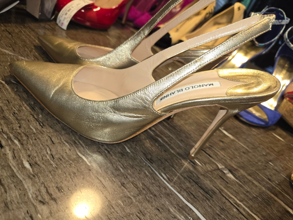 Manolo Blahnik Gold Slingback Heels - Size 41