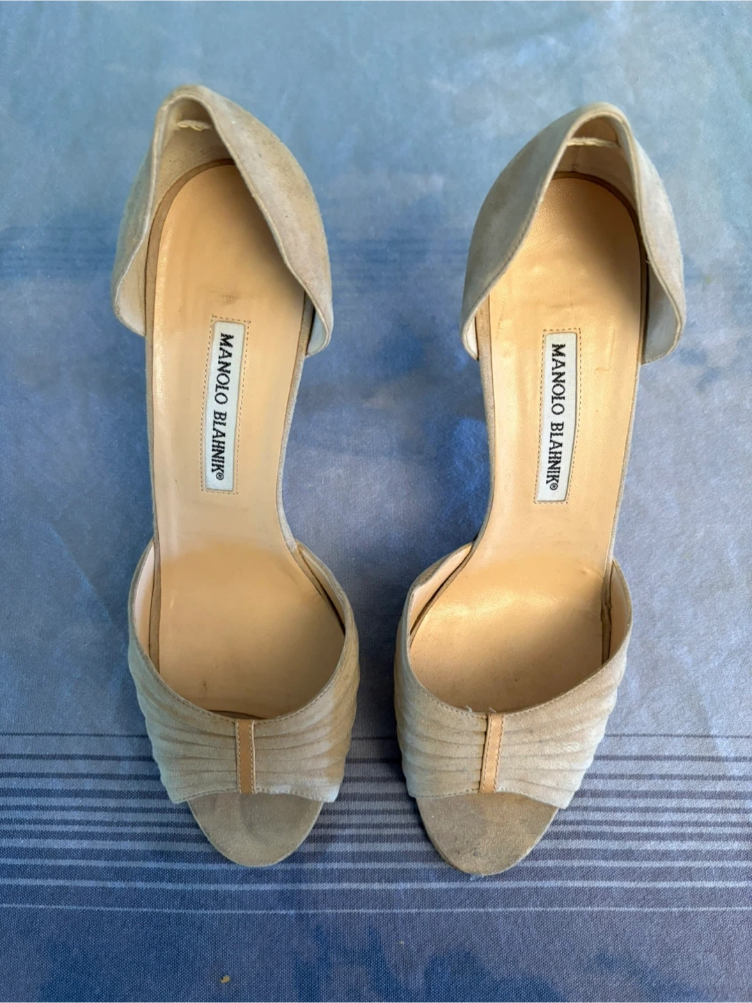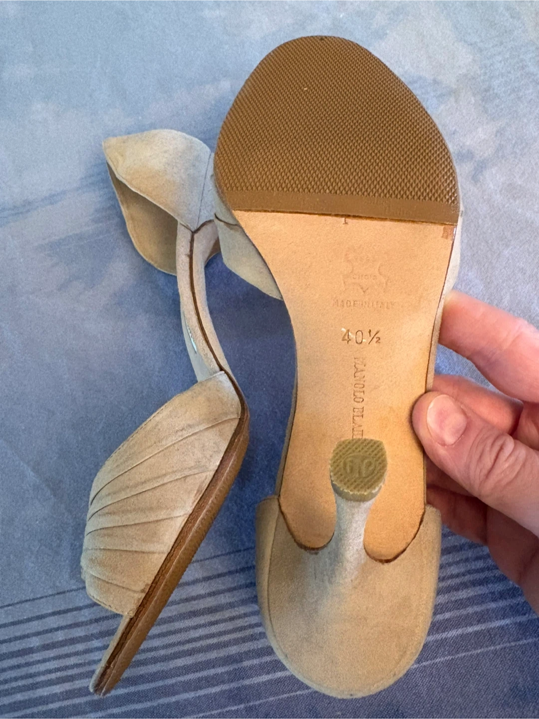 Selling a pair of Manolo Blahnik heels in size 40.5. They are in good condition and have a classic design. Perfect for a special occasion!