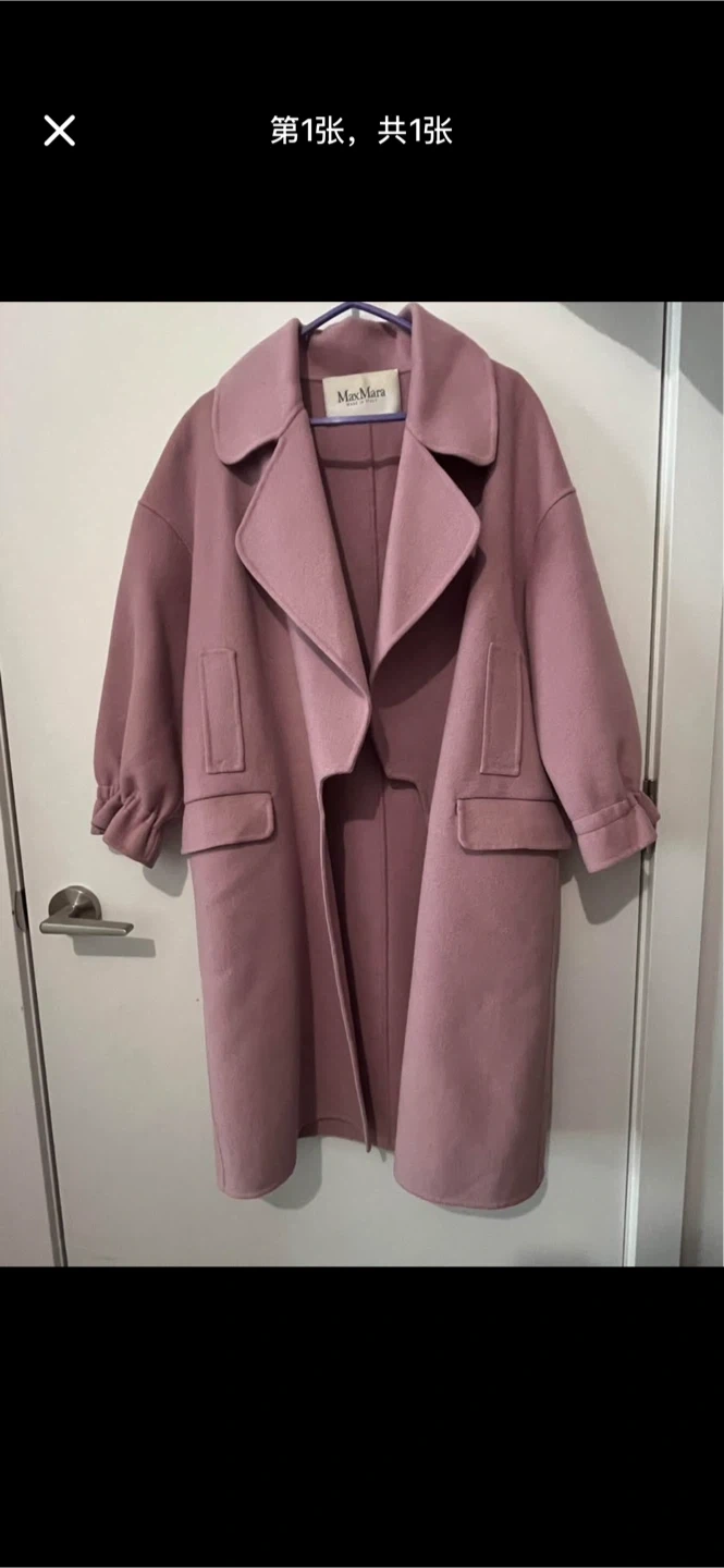 60Joli manteau Max Mara de couleur rose. Il est en très bon état et parfait pour la saison! Manche sont faite plus courte arrive en haut des poignets