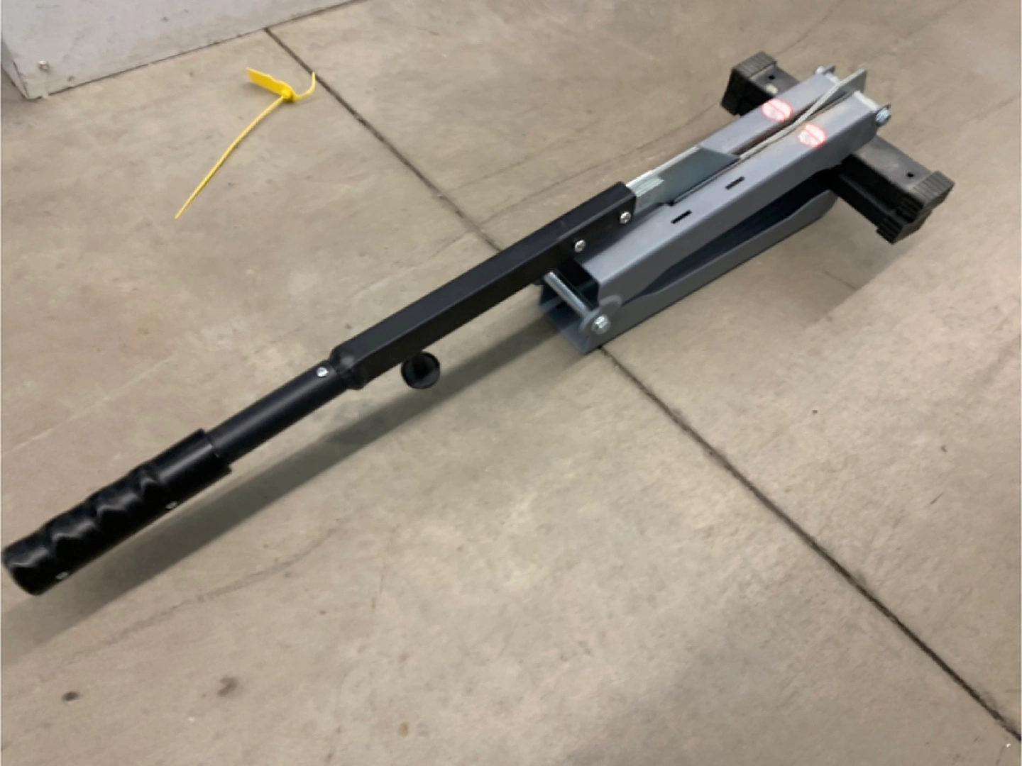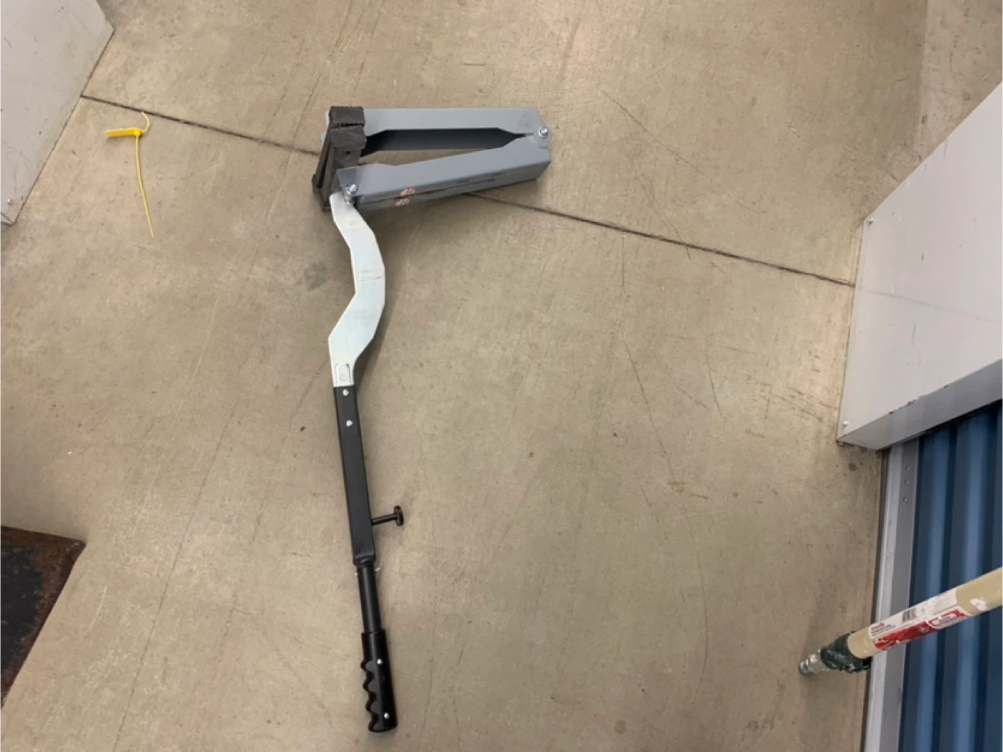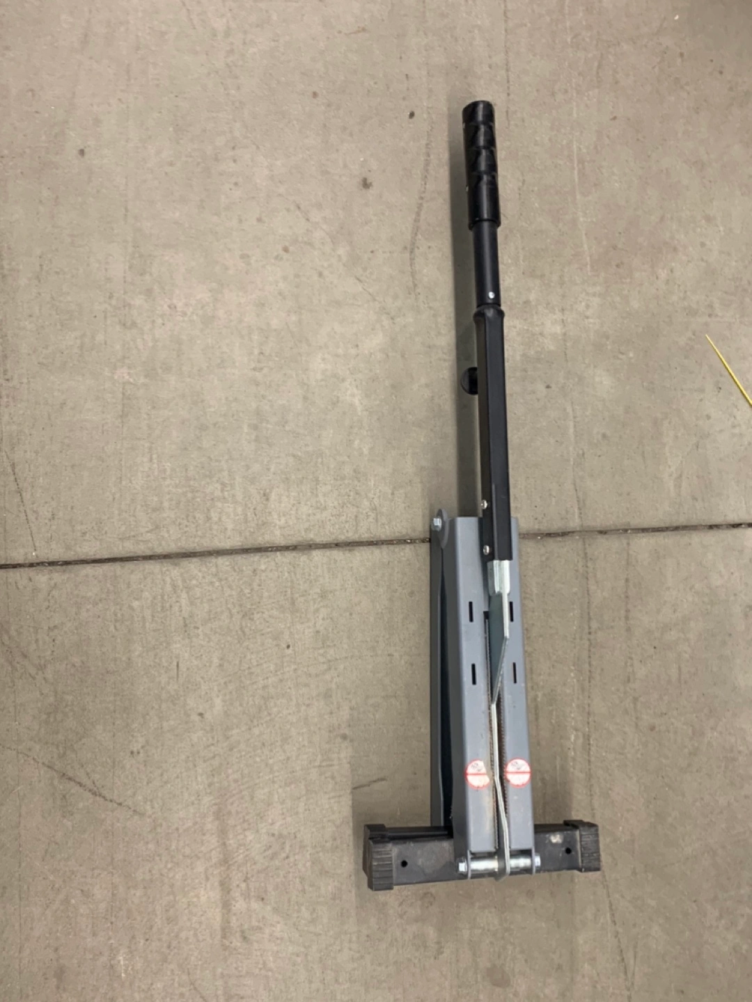 Here's a manual rebar bender in good condition. It's a handy tool for bending rebar on the job site or for DIY projects around the house. It's durable and easy to use