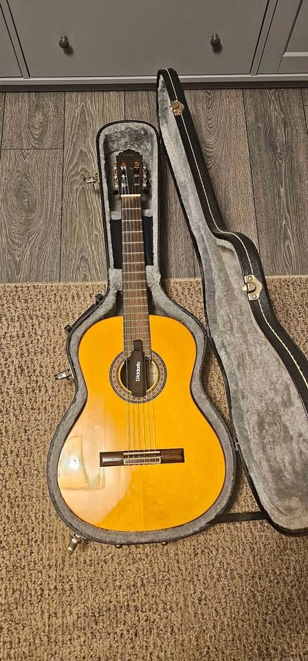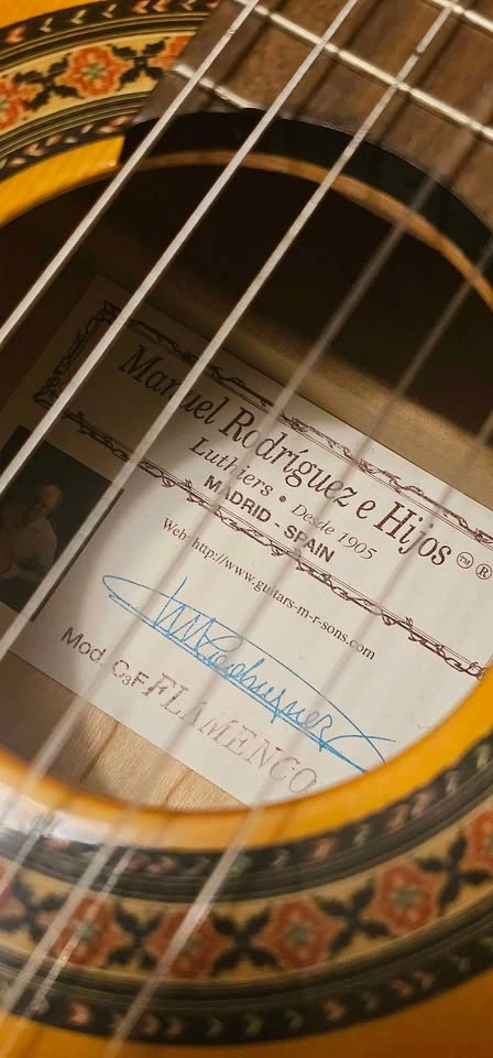 Beautiful Manuel Rodríguez C3F Flamenco Guitar, handcrafted in Spain. This model is known for its bright, crisp tone, fast action, and authentic flamenco feel. The solid spruce top and cypress back and sides produce a lively, resonant sound that’s perfect for both traditional flamenco and fingerstyle playing. Condition: Excellent – lightly used, always kept humidified and in a smoke-free home. Includes: Hard shell case Solid spruce top Cypress back and sides Spanish cedar neck Ebony fingerboard Traditional flamenco setup (low action, percussive tone) Made in Spain A great choice for anyone seeking a genuine Spanish-made flamenco guitar with exceptional playability and tone. 📍Pickup: Richmond Hill 🔄 Open to reasonable offers.