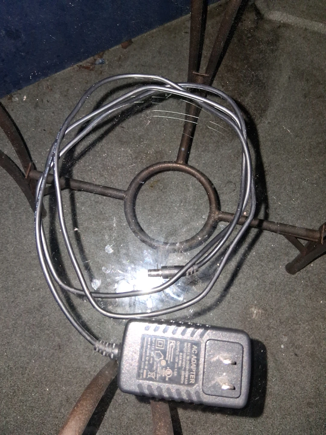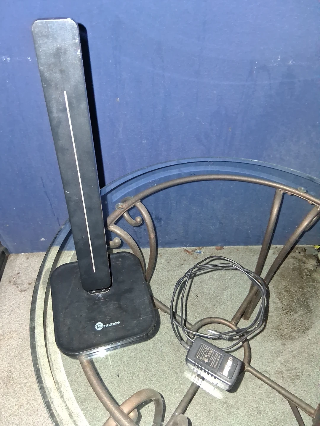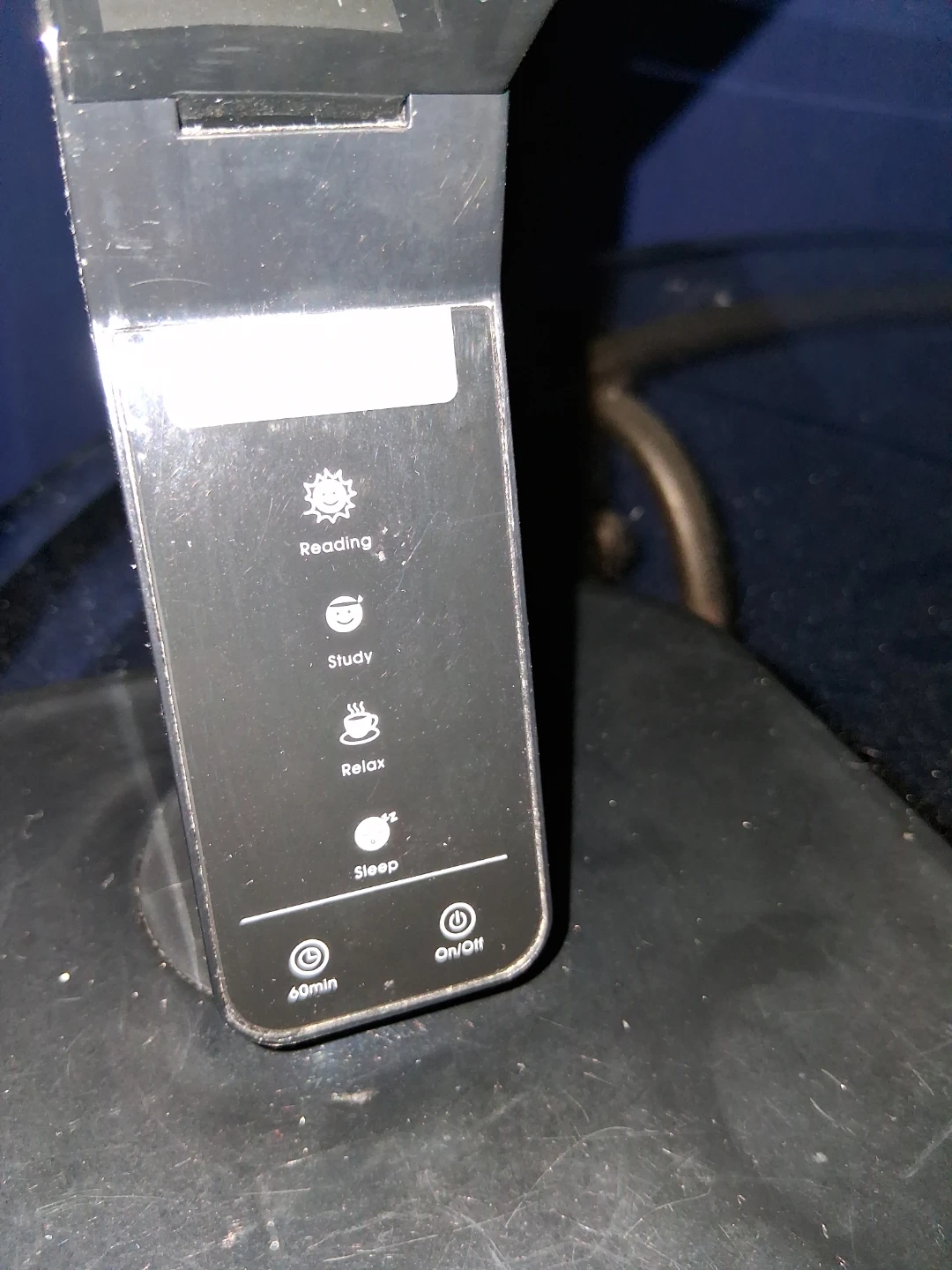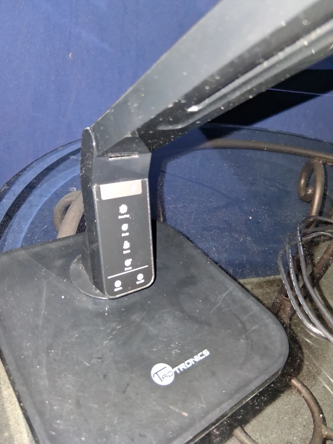 This is a TaoTronics LED desk lamp. It features four lighting modes: Reading, Study, Relax, and Sleep. It also includes a 60-minute timer and On/Off button. The lamp comes with its AC adapter. Also you can charge your electronics via USB cable with it. Very good quality and ready for a new home.