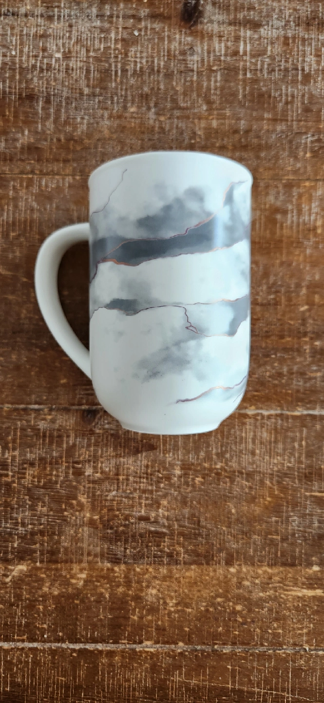Here's a lovely coffee mug with a unique marble design! It's in great condition and ready for a new home. Perfect for enjoying your favourite hot beverages