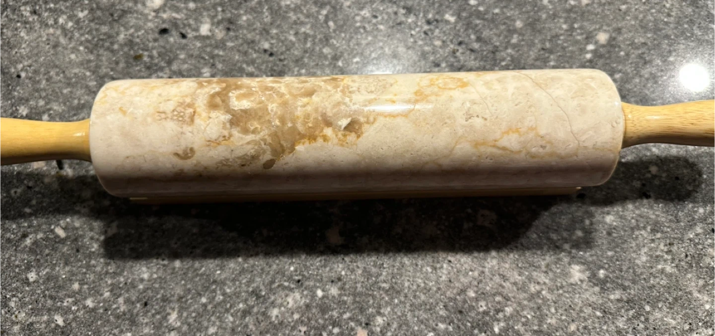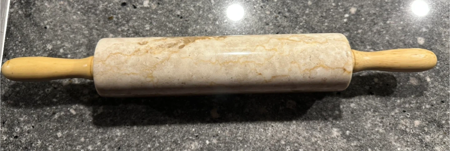 28Here's a lovely and solid marble rolling pin for your baking needs! It has a beautiful marble pattern and wooden handles.