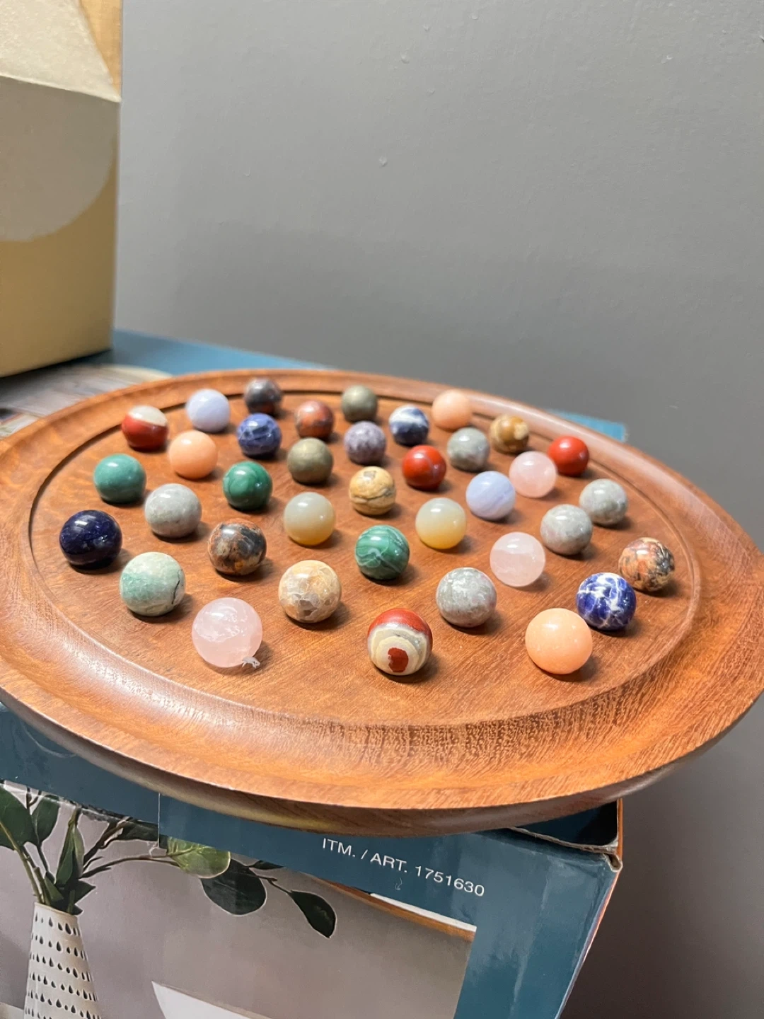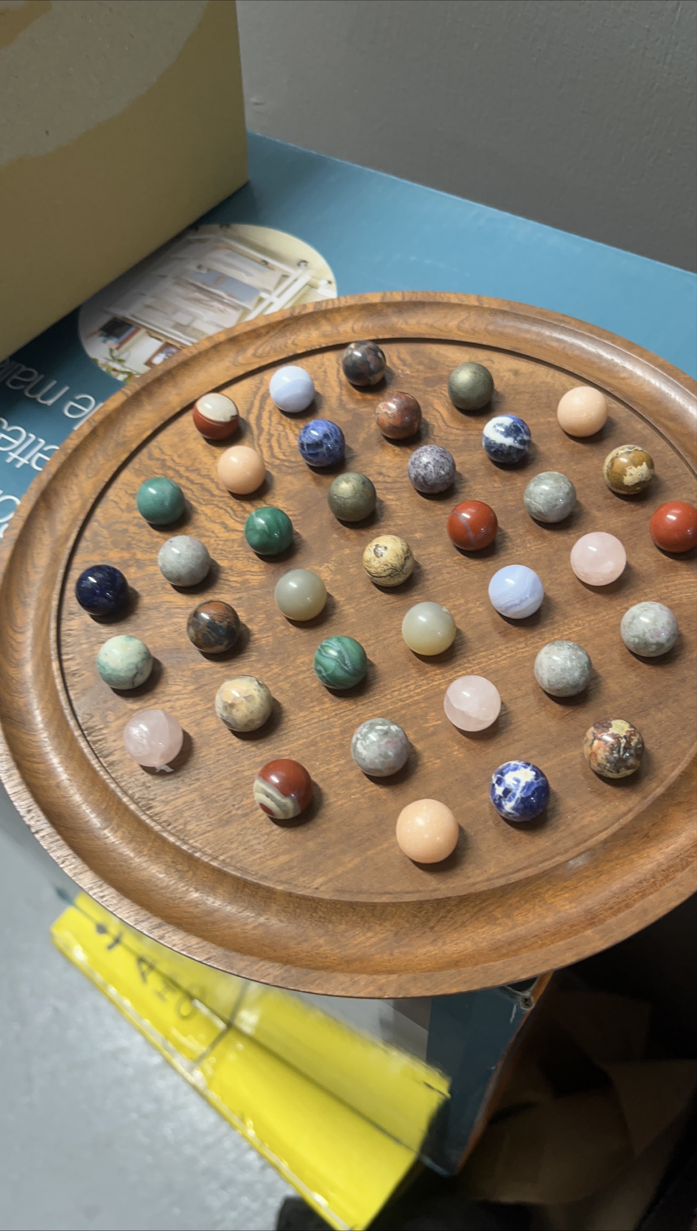 140Selling a classic marble solitaire board game. It's in great shape and ready for a new home! The board is made of wood and comes with a variety of colourful marbles. Great for a coffee table or game night!