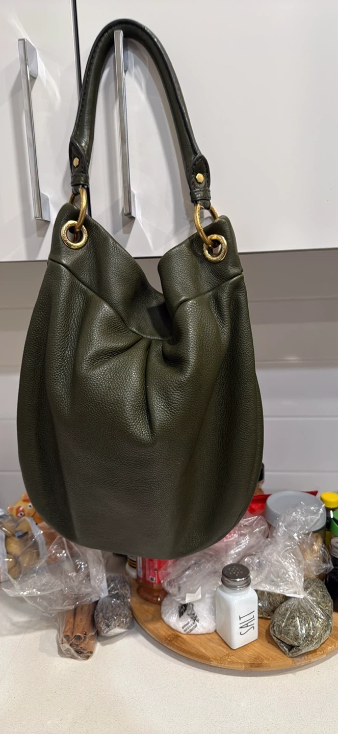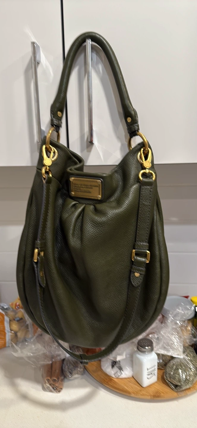 Selling a gently used Marc by Marc Jacobs handbag in a lovely olive green colour. The interior lining has the classic fun, bold print. It's a stylish and functional bag, with short and long strap, and gold hardware. I have sold all but 2 purses and once I sell this, I will have space in my closet again!!