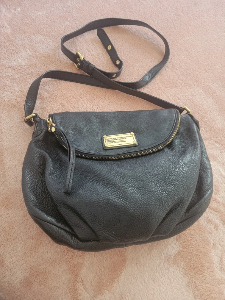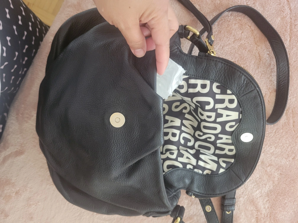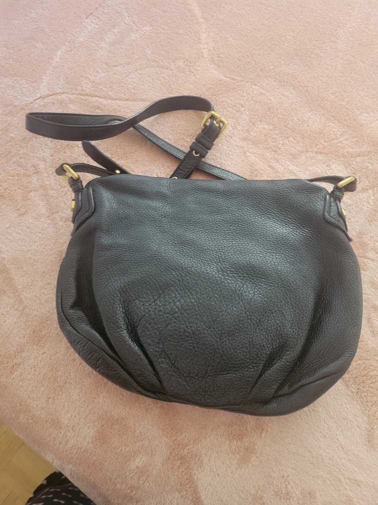 Selling a gently used Marc Jacobs crossbody bag in black leather. It's in good condition and perfect for everyday use. The interior lining has a fun, patterned design. It's a stylish and practical bag!