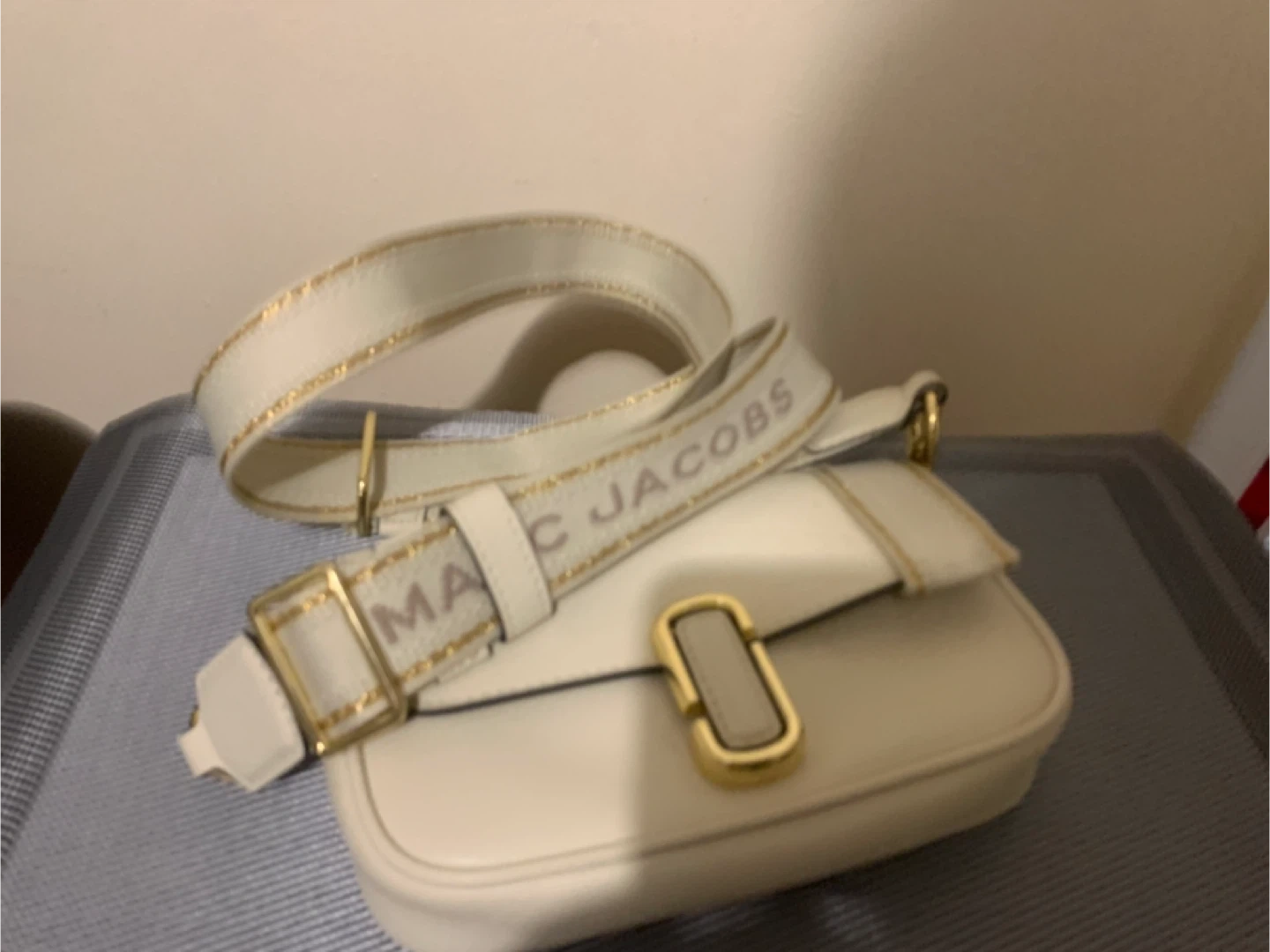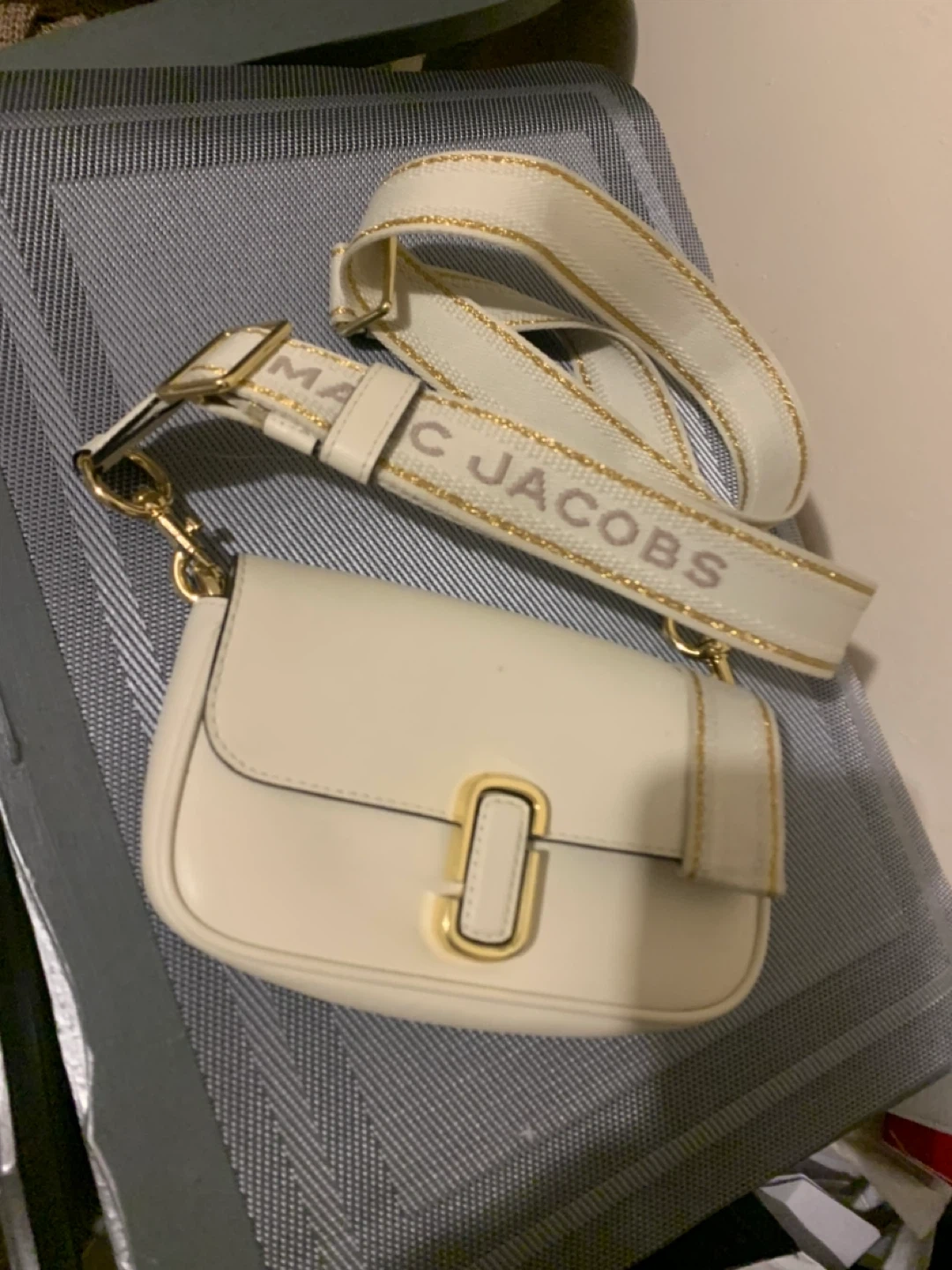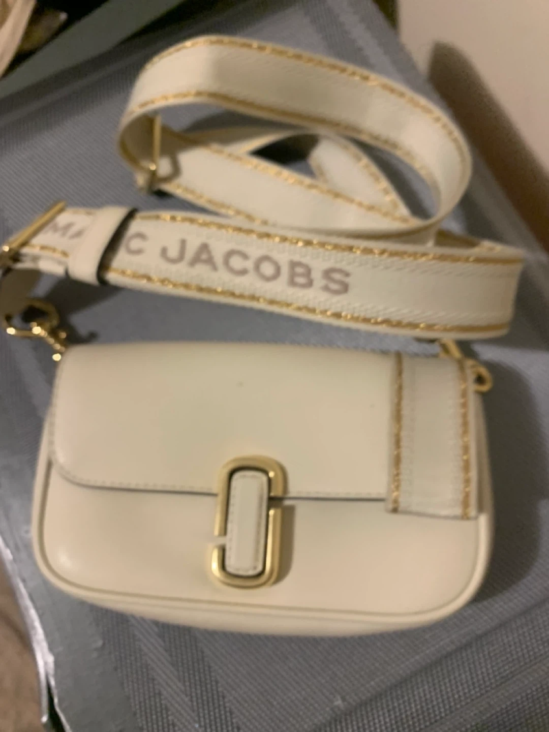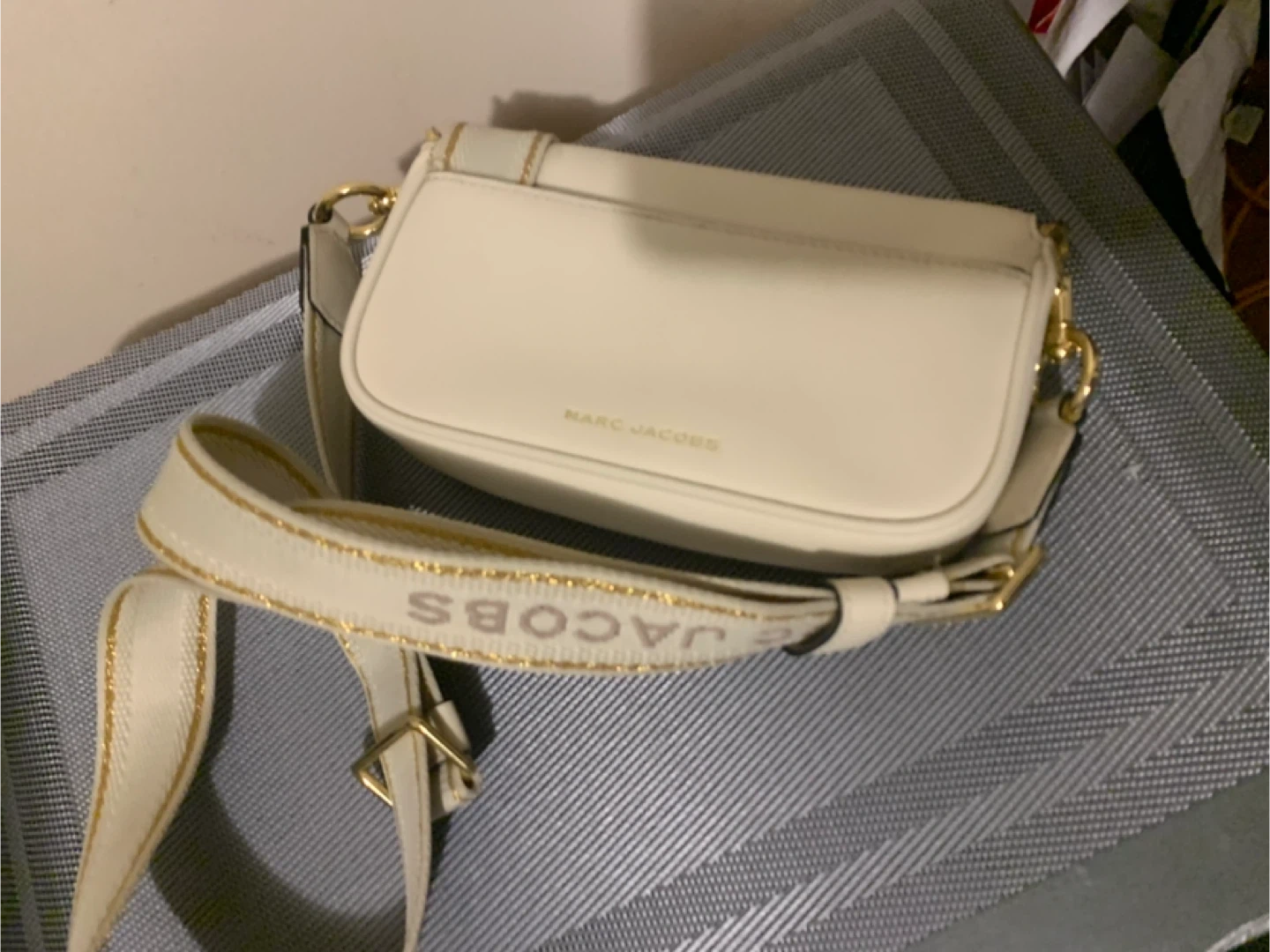 10Selling a cute Marc Jacobs shoulder bag! It's a cream colour, with a gold zipper and gold hardware. The strap has the brand name on it!