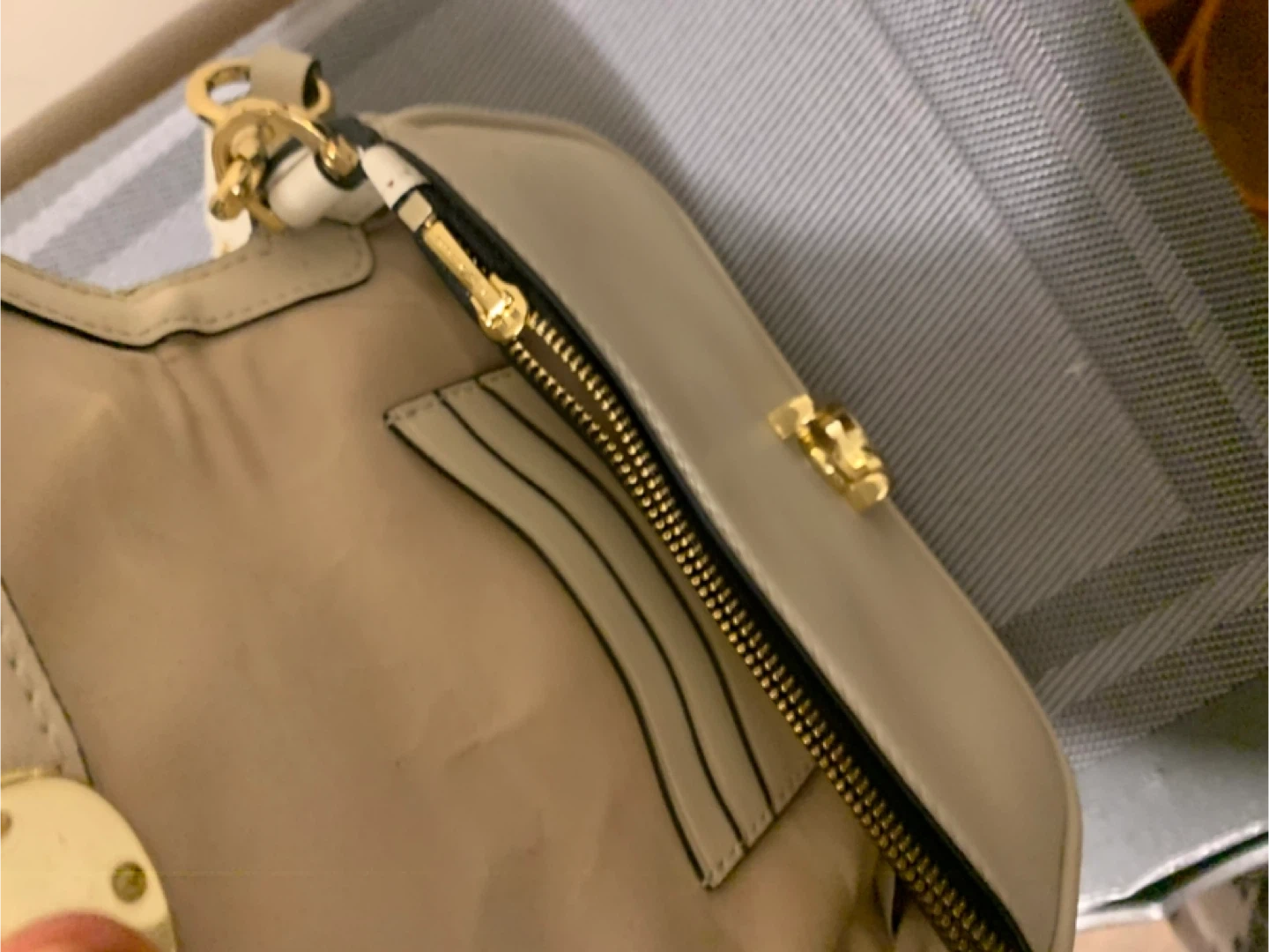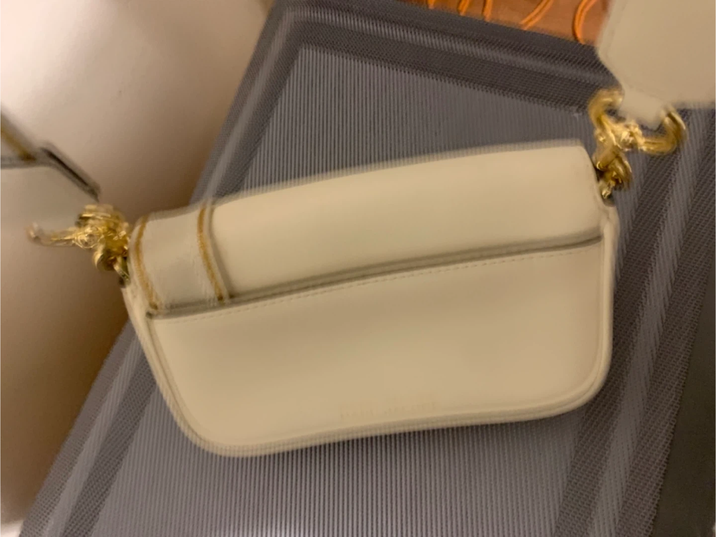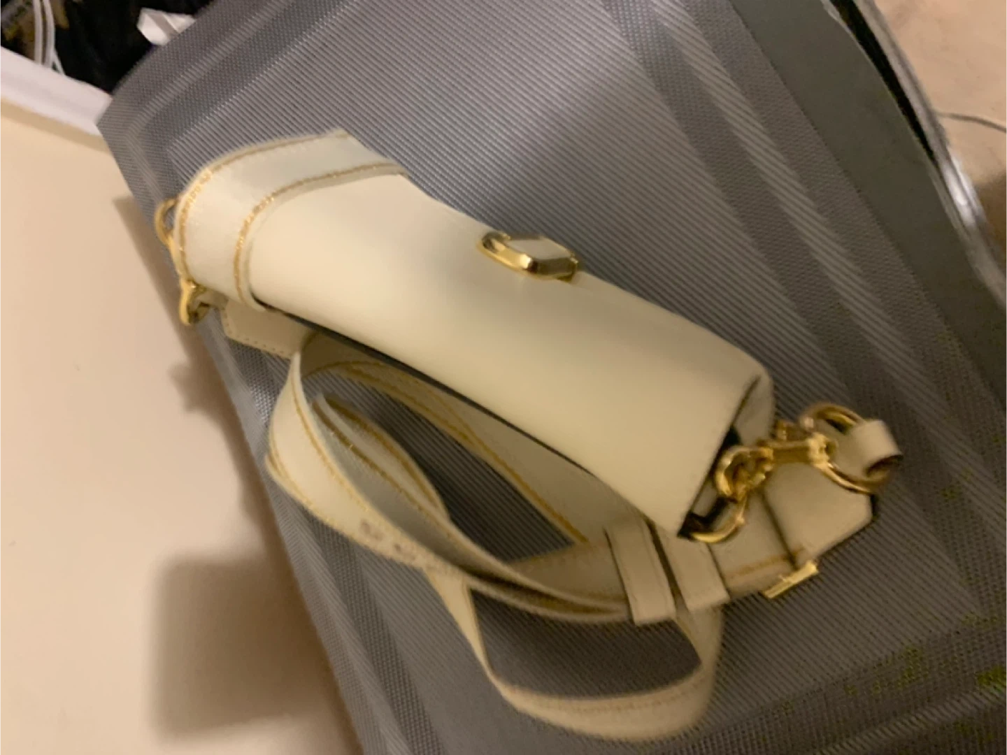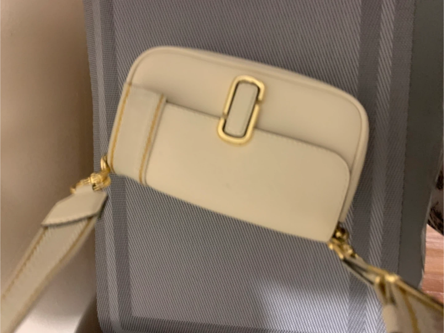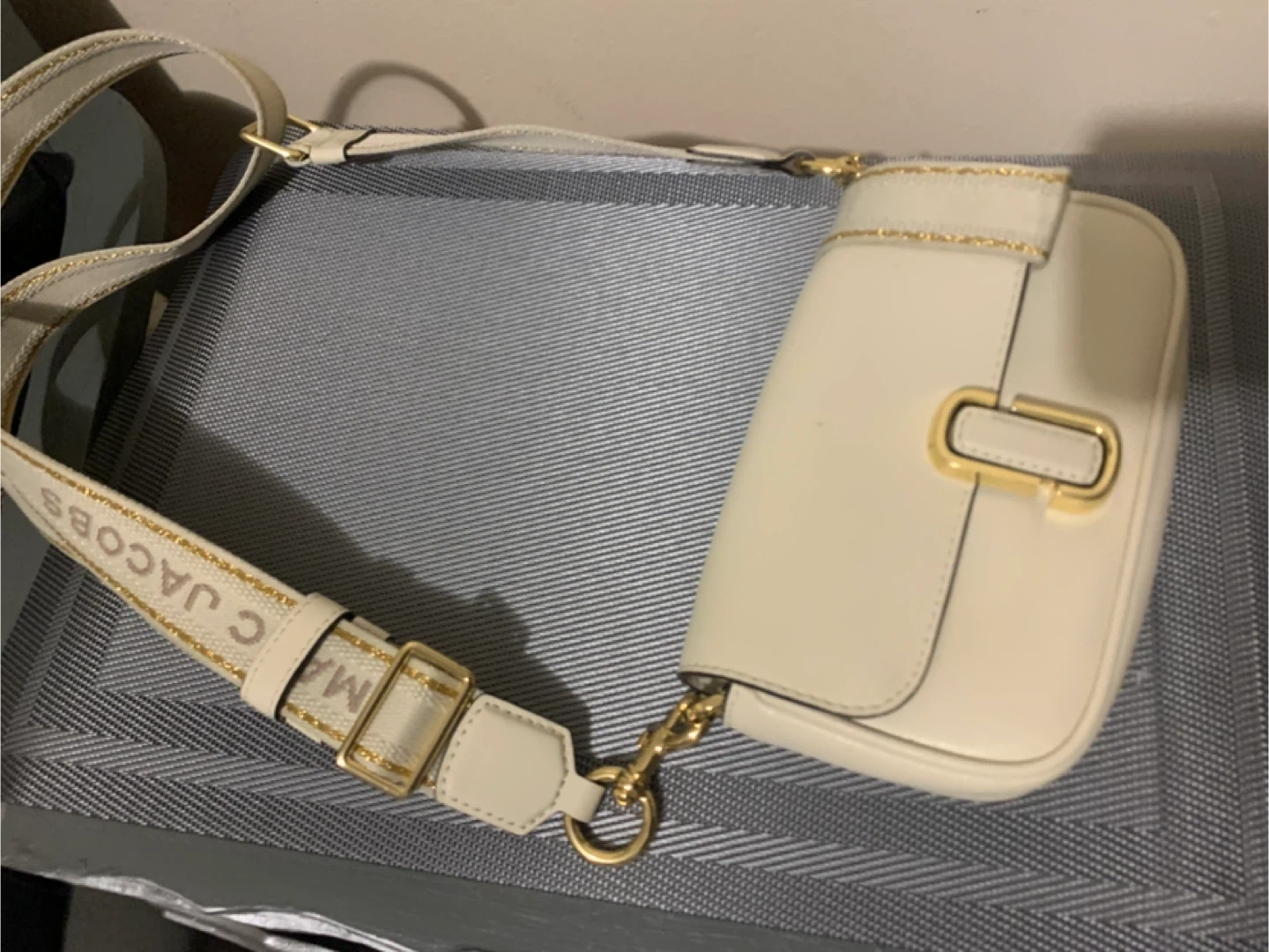 10Selling a cute Marc Jacobs shoulder bag! It's a cream colour, with a gold zipper and gold hardware. The strap has the brand name on it!