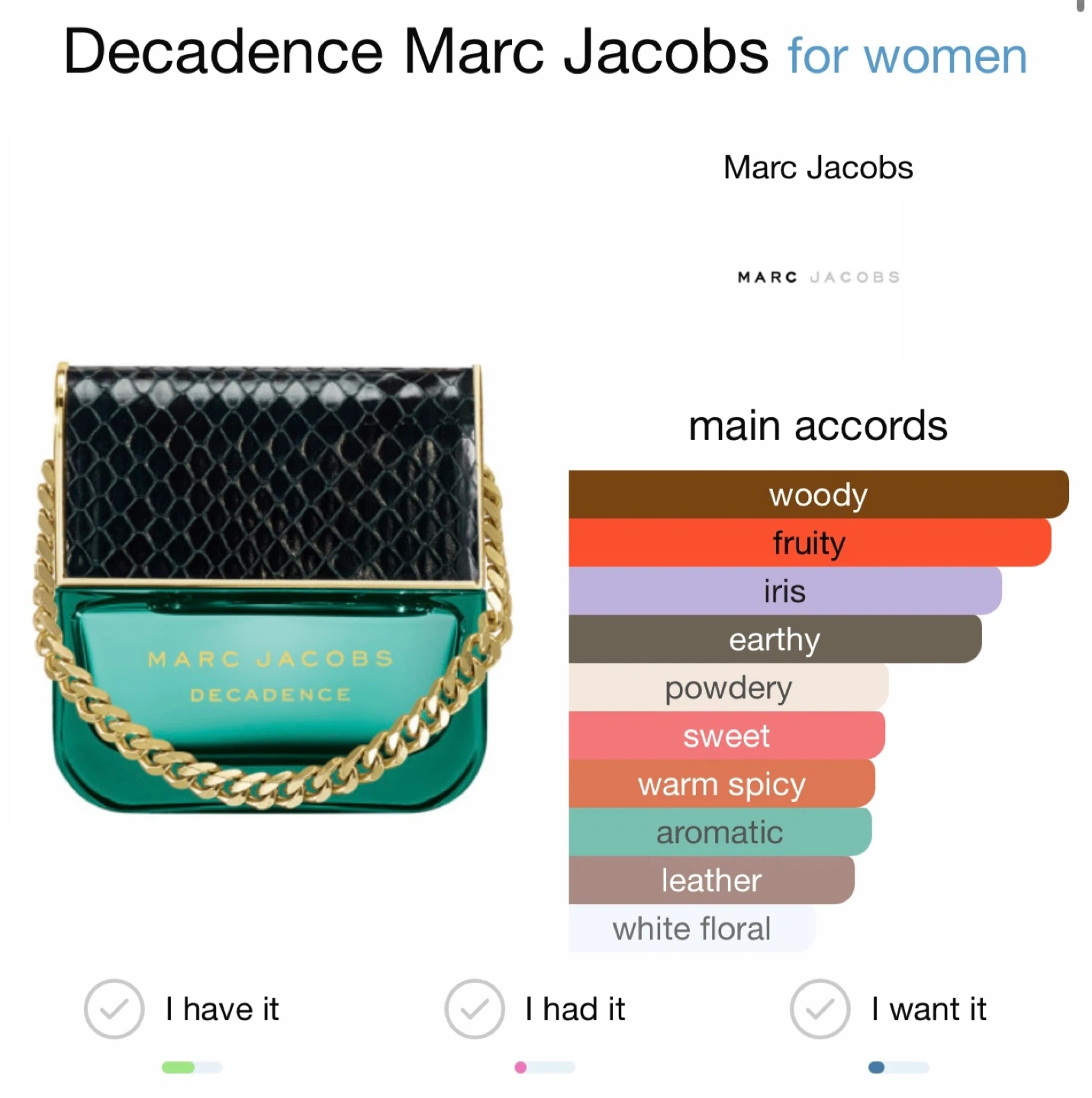 EDP 100 ML Decadence by Marc Jacobs is a Oriental Floral fragrance for women. Decadence was launched in 2015. Decadence was created by Annie Buzantian and Ann Gottlieb. Top notes are Plum, Saffron and Iris; middle notes are Orris, Jasmine Sambac and Bulgarian Rose; base notes are Vetiver, Papyrus and Liquidambar
