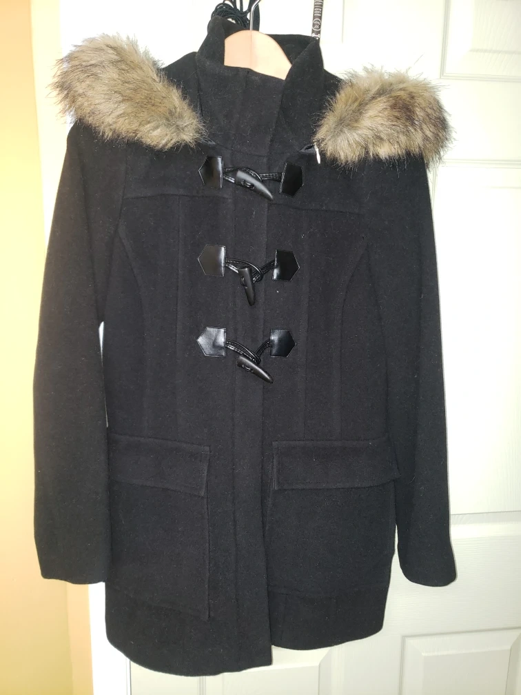 Great staple piece for your winter wardrobe. Fur hood trim | Wool poly blend | Size 4