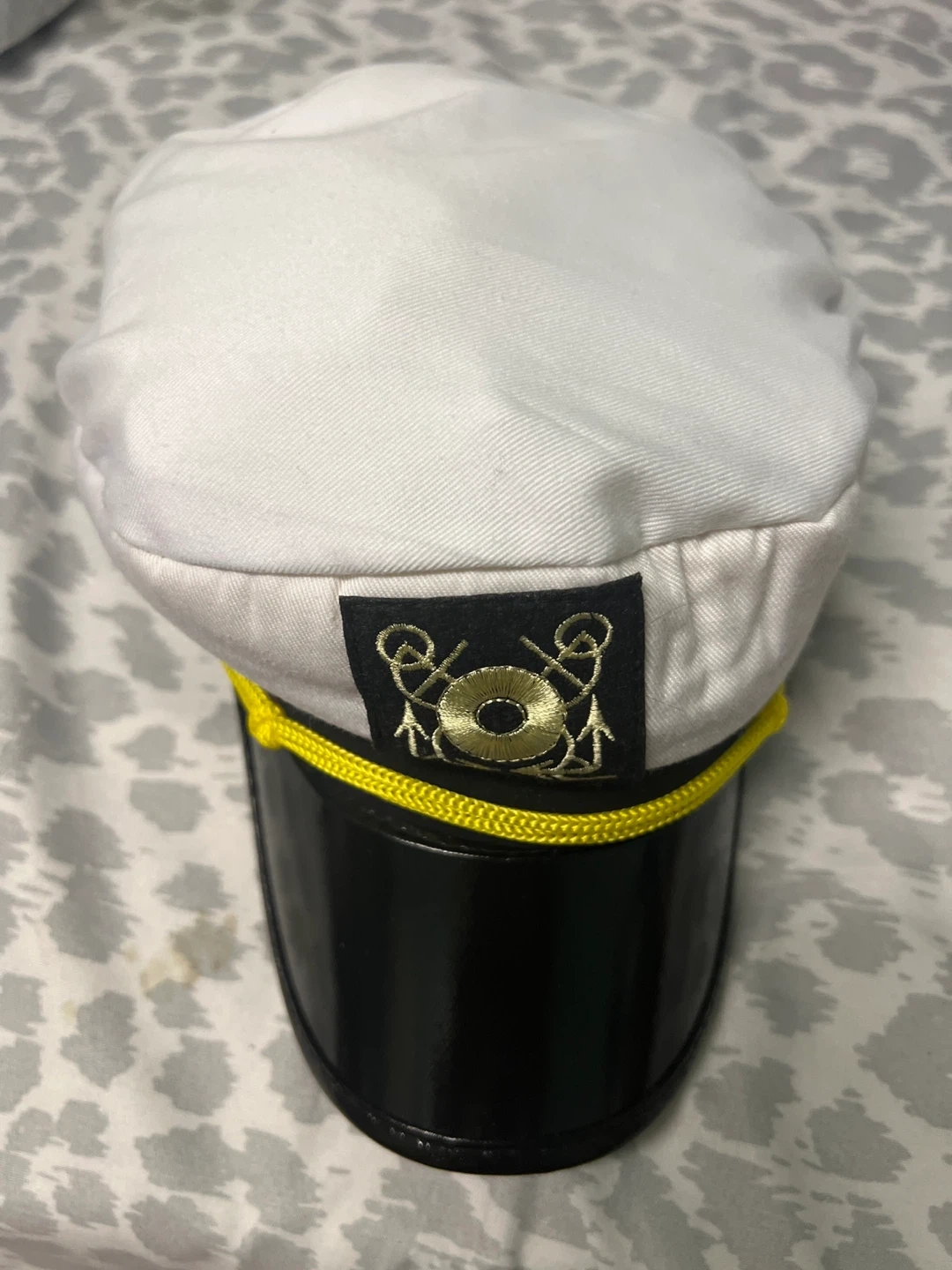 Selling a white marching band hat with a yellow cord. It's in great shape and ready for its next performance! Can also make a great Halloween costume hat!