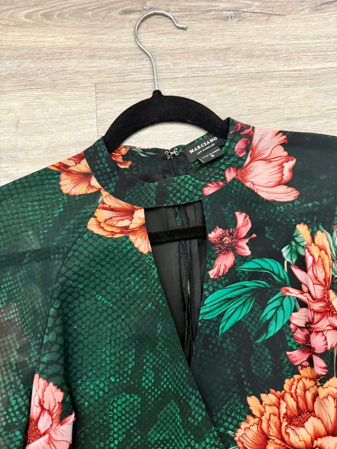 Marciano Floral Snakeskin Mini Dress with Keyhole Neckline