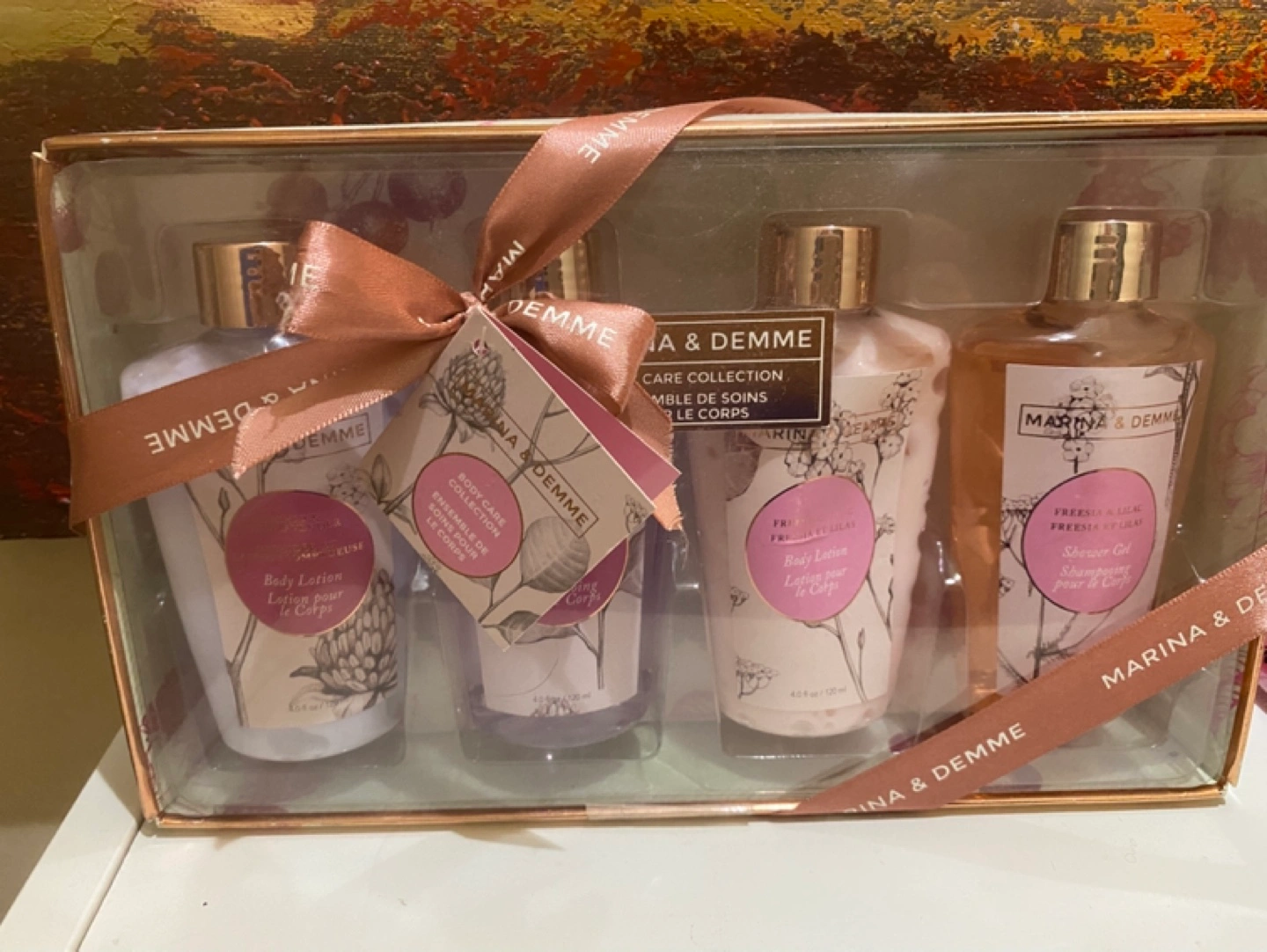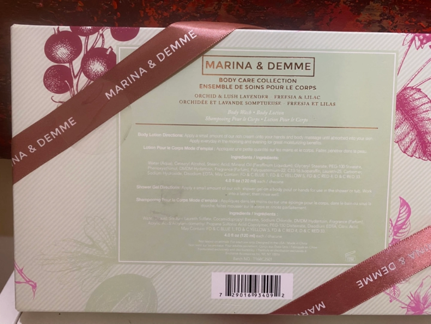 574Gift set includes body lotion, body wash, and shower gel. Orchid & Lush Lavender scent.