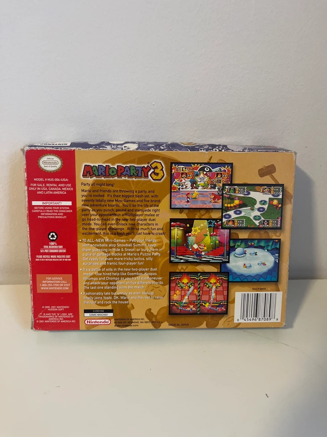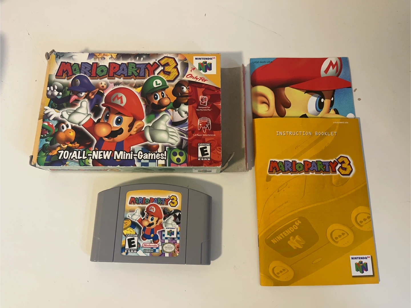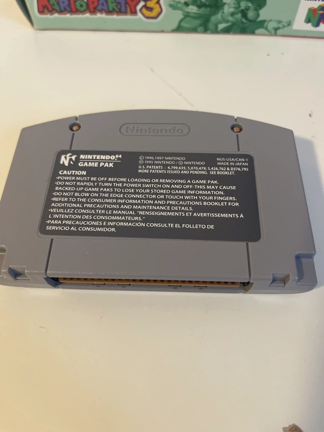 78Selling an original game cartridge of Mario Party 3 for the Nintendo 64! It comes with the original box and instruction booklet. Get ready to enjoy 70 all-new mini-games with your friends! Game and booklet great condition.