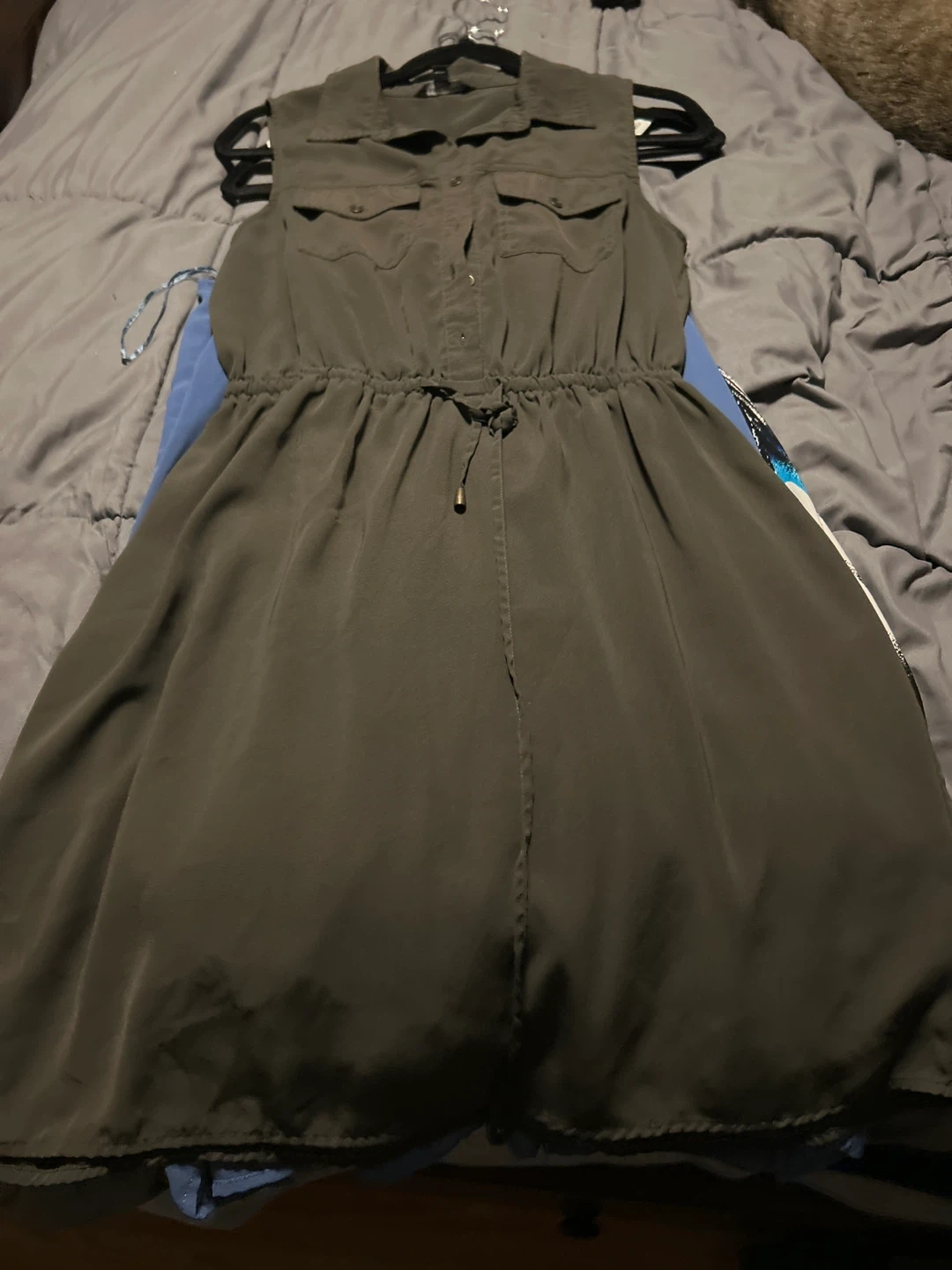 111Cute Mario Serrani olive green dress in size M! It's made of 100% polyester and has a drawstring waist. Perfect for a casual day out