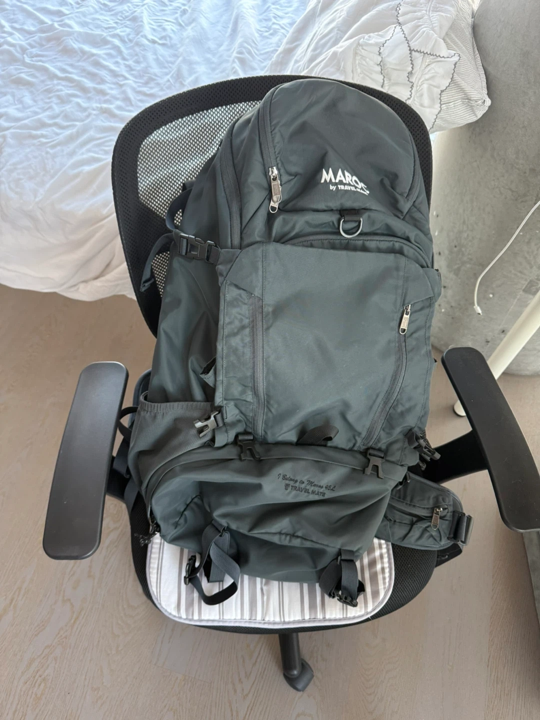 Selling a Maroc Travel Mate 45L backpack. It's in great condition and ready for your next adventure! The backpack features a durable design and plenty of space for all your essentials. Perfect for travel or hiking There is a separate compartment at the bottom for shoes, and the back panel is designed with great ventilation for airflow. It’s only been used twice.