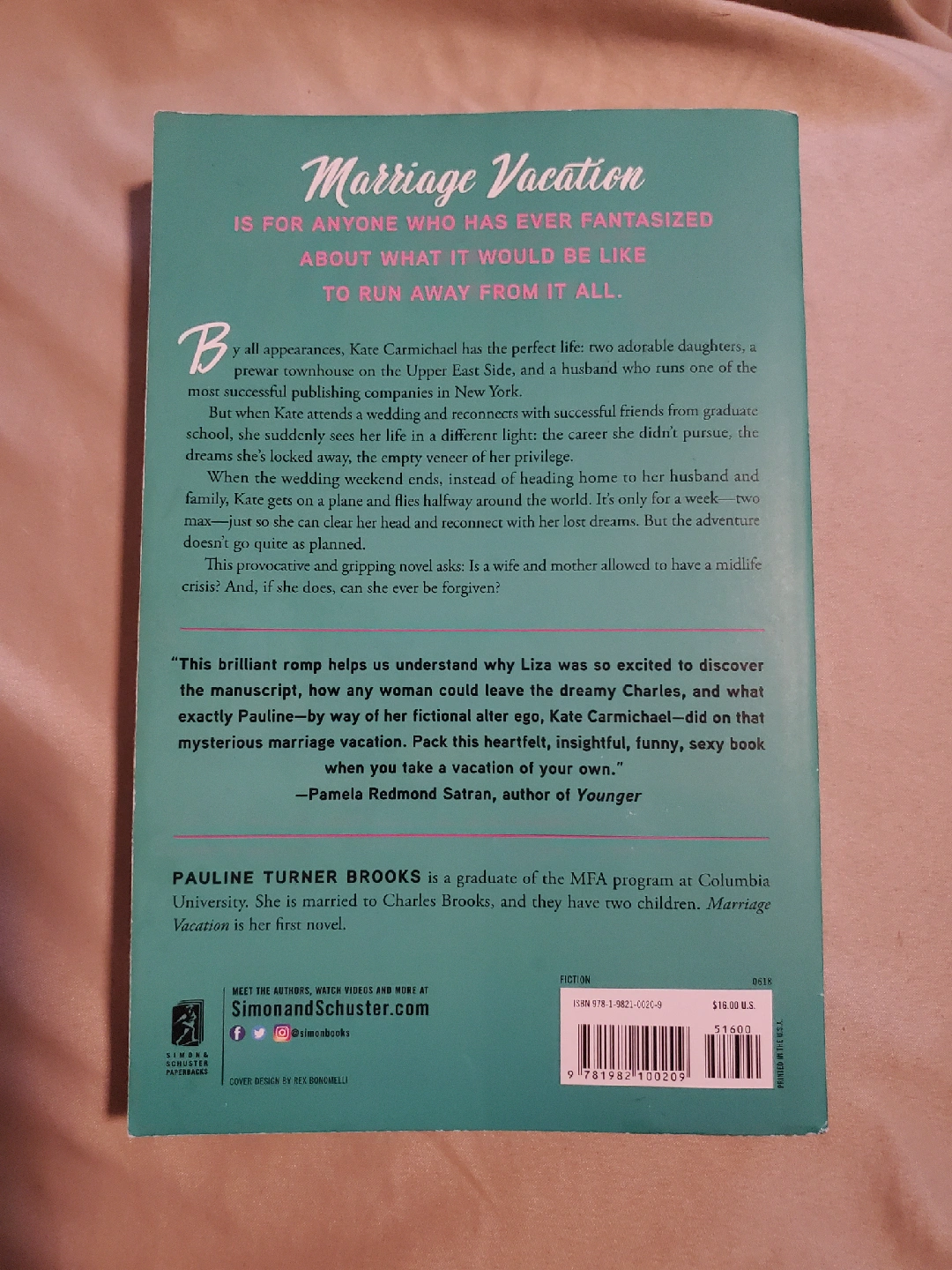 Selling a copy of "Marriage Vacation" by Pauline Turner Brooks! It's a novel that explores the complexities of marriage and self-discovery. Perfect for anyone who enjoys a thought-provoking read with engaging characters and drama. From the hit TV land series Younger BIN: Novel: Marriage Vacation by Pauline Brooks Pick up only. Langley - 216 St/Fraser Hwy. Lower Murrayville. Priority to quick pick up. DM for quickest response. Marriage Vacation is for anyone who has ever fantasized about what it would be like to run away from it all. By all appearances, Kate Carmichael has the perfect life: two adorable daughters, a prewar townhouse on the Upper East Side, and a husband who runs one of the most successful publishing companies in New York. But when Kate attends a wedding and reconnects with successful friends from graduate school, she suddenly sees her life in a different light: the career she didn't pursue, the dreams she's locked away, the empty veneer of her privilege. When the wedding weekend ends, instead of heading home to her husband and family, Kate gets on a plane and flies halfway around the world. She claims it's just going to be for a week--two max--just so she can clear her head and reconnect with her lost dreams. But the adventure doesn't go quite as planned. This provocative and gripping novel asks: Is a wife and mother allowed to have a midlife crisis? And, if she does, can she ever be forgiven? PRAISE FOR Marriage Vacation "Marriage Vacation has everything you want an in a novel: fascinating characters, drama, secrets, emotional reckonings, and far-flung adventure. If you love Younger, you'll love this book. If you've never watched an episode of Younger (you should change that), you'll still love this book. And just wait until you read page 58 " --Darren Star, creator of Sex and The City and Younger