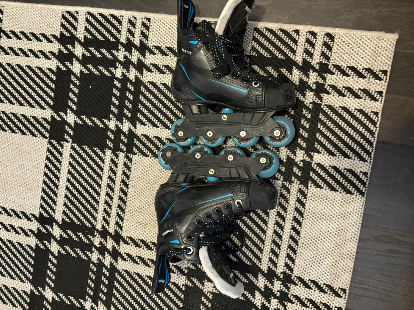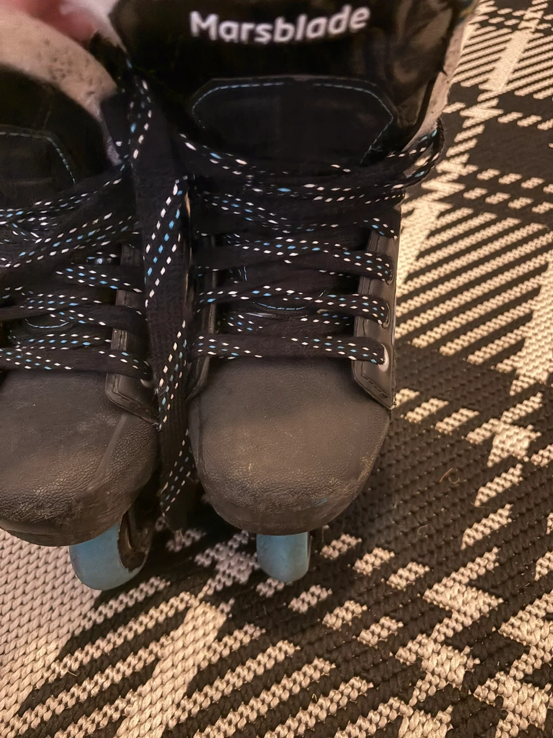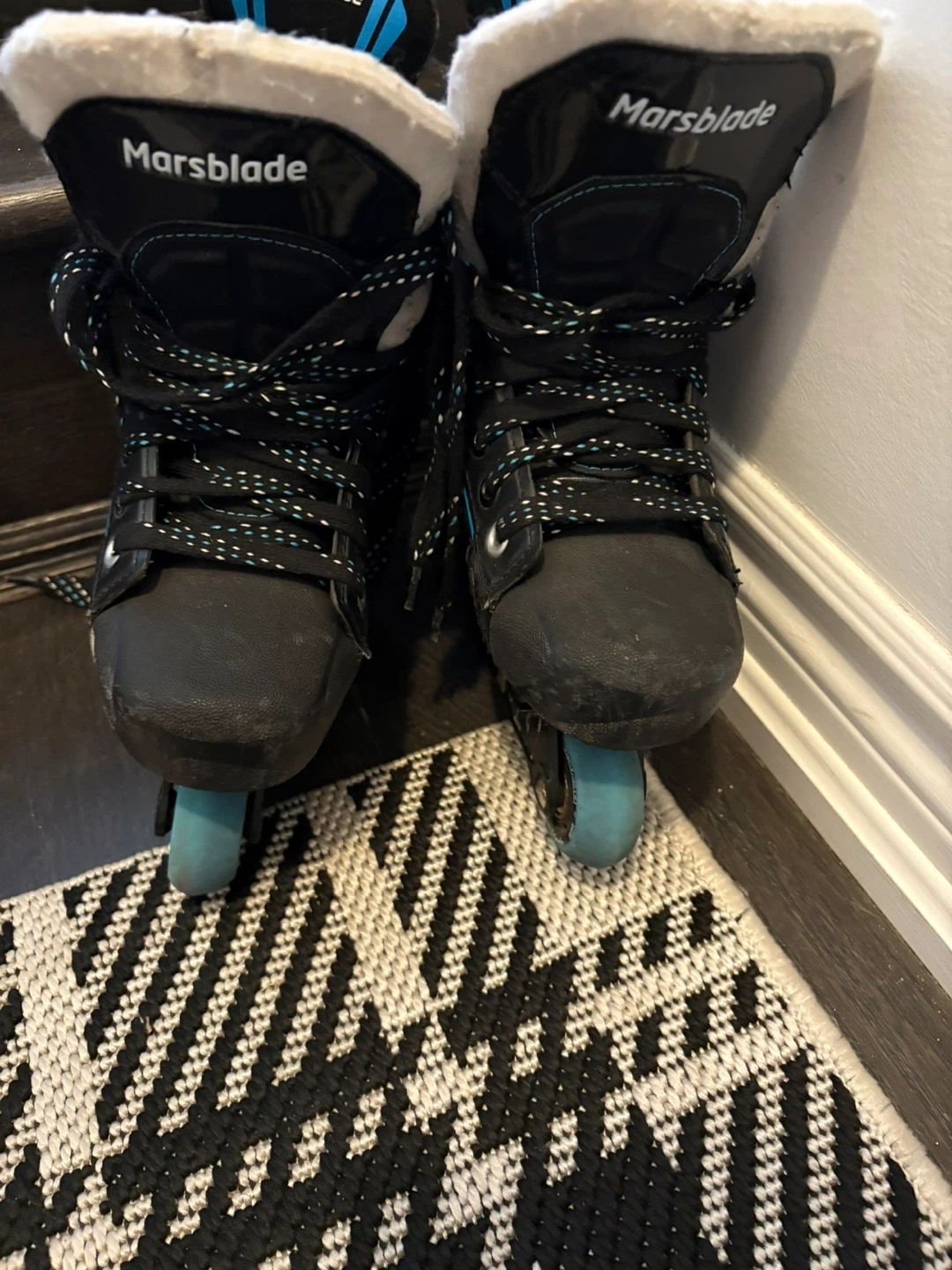 Selling a pair of Marsblade inline skates. They are black with blue accents and in good condition. The size is 2D Asking 150.