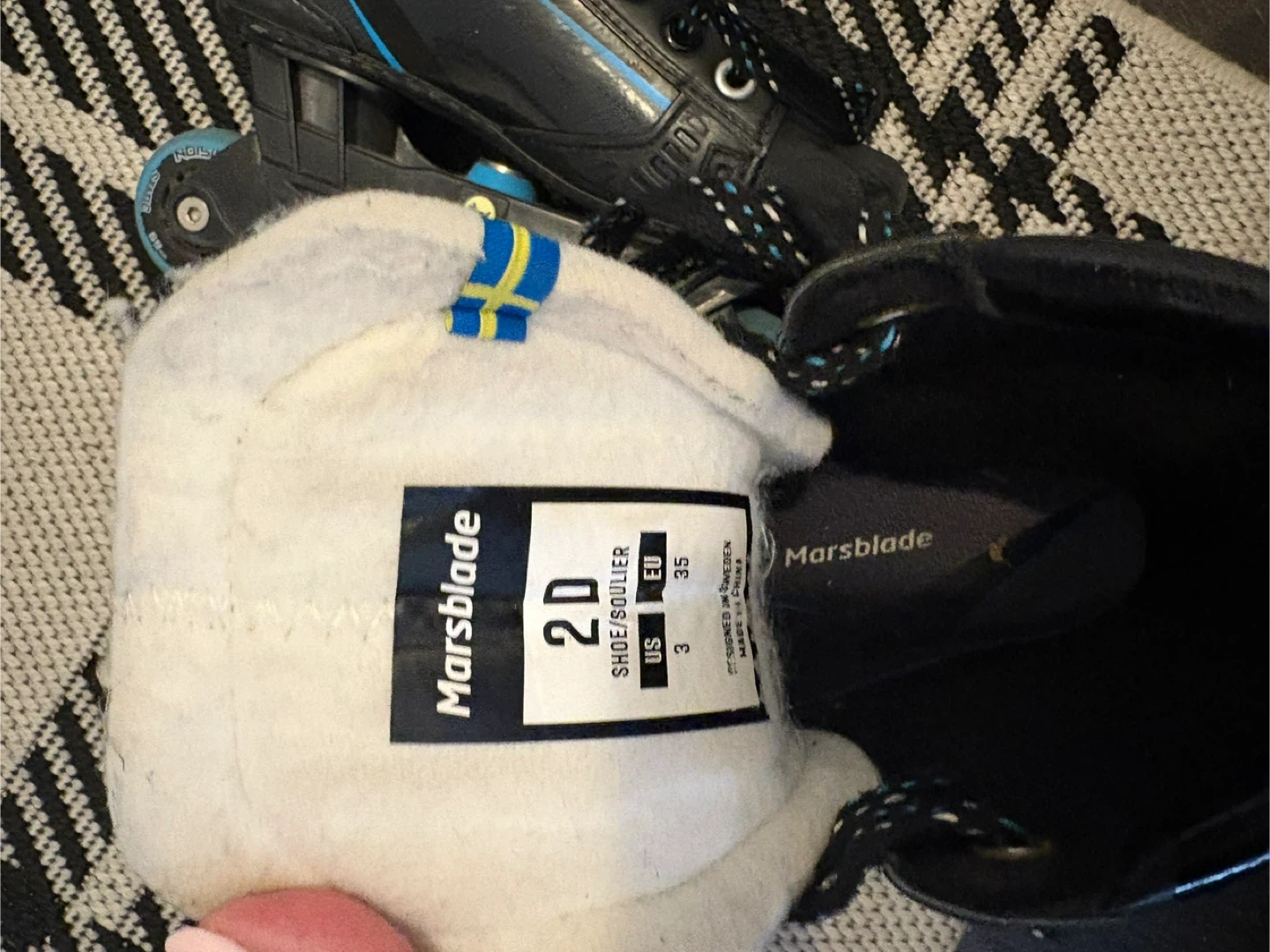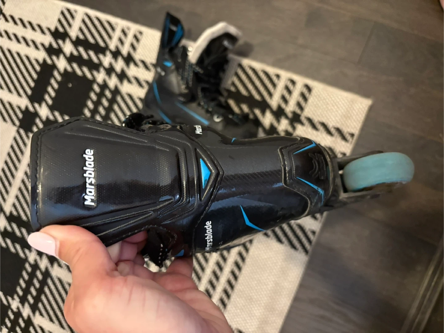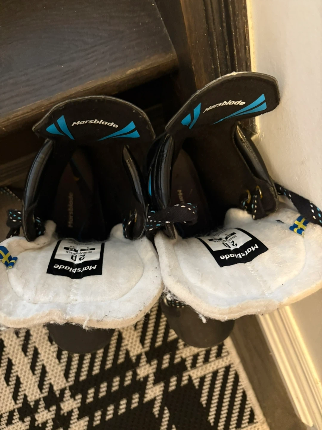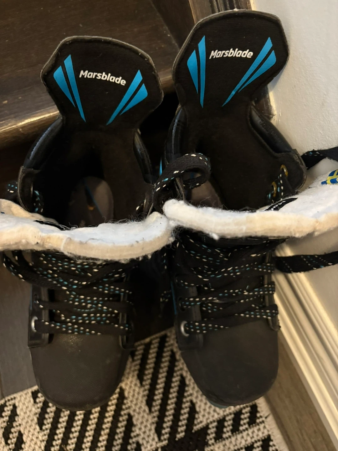 Selling a pair of Marsblade inline skates. They are black with blue accents and in good condition. The size is 2D Asking 150.