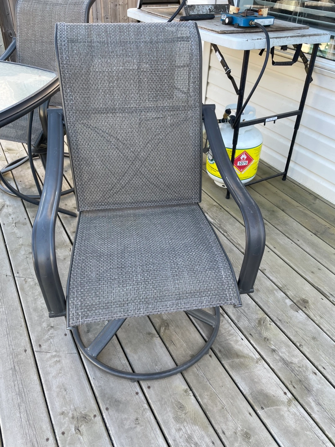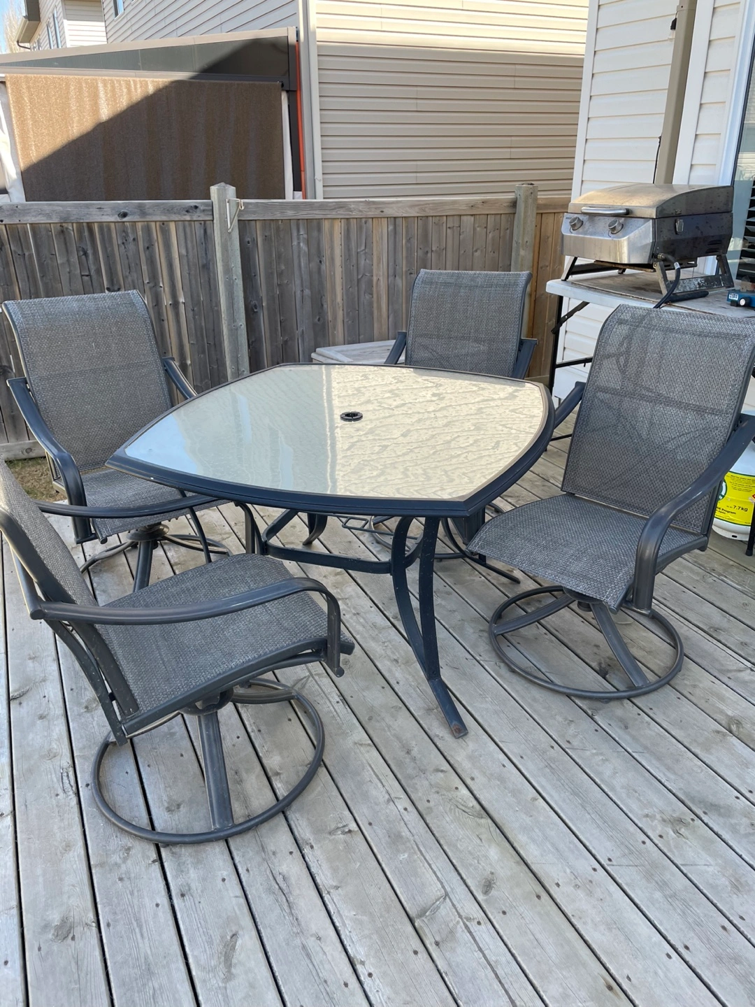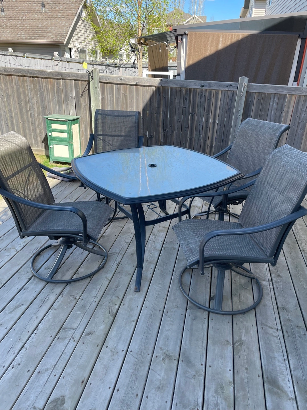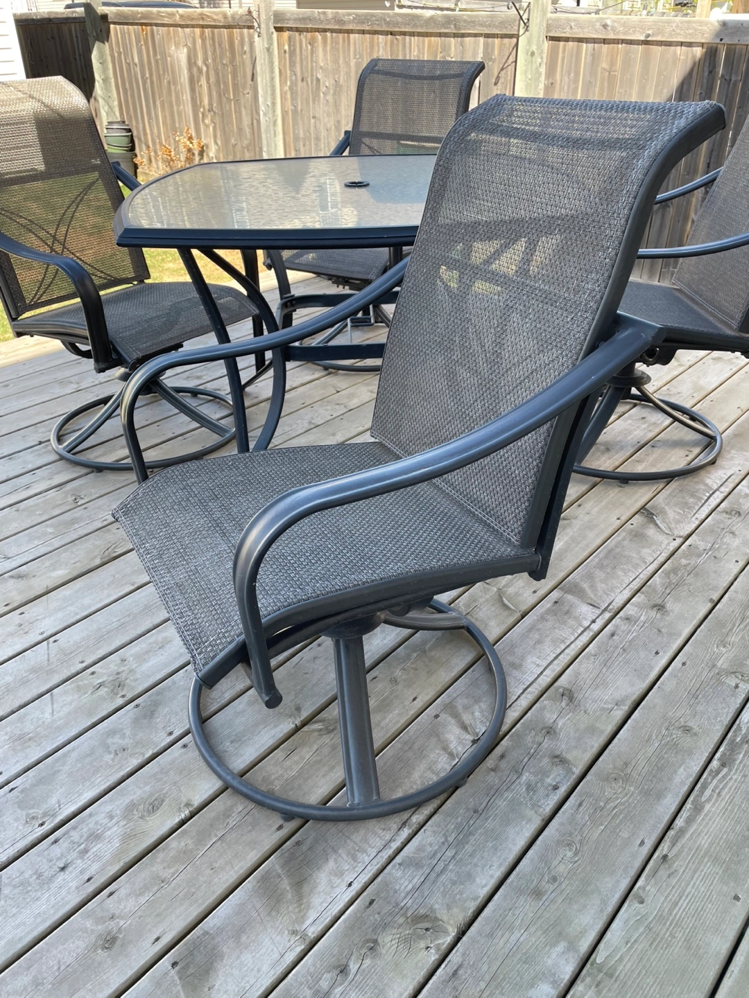 86Martha Stewart patio table and four swivel rocking chairs. The set is in pretty good condition. Must sell because of moving to an apartment.