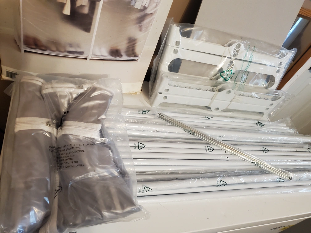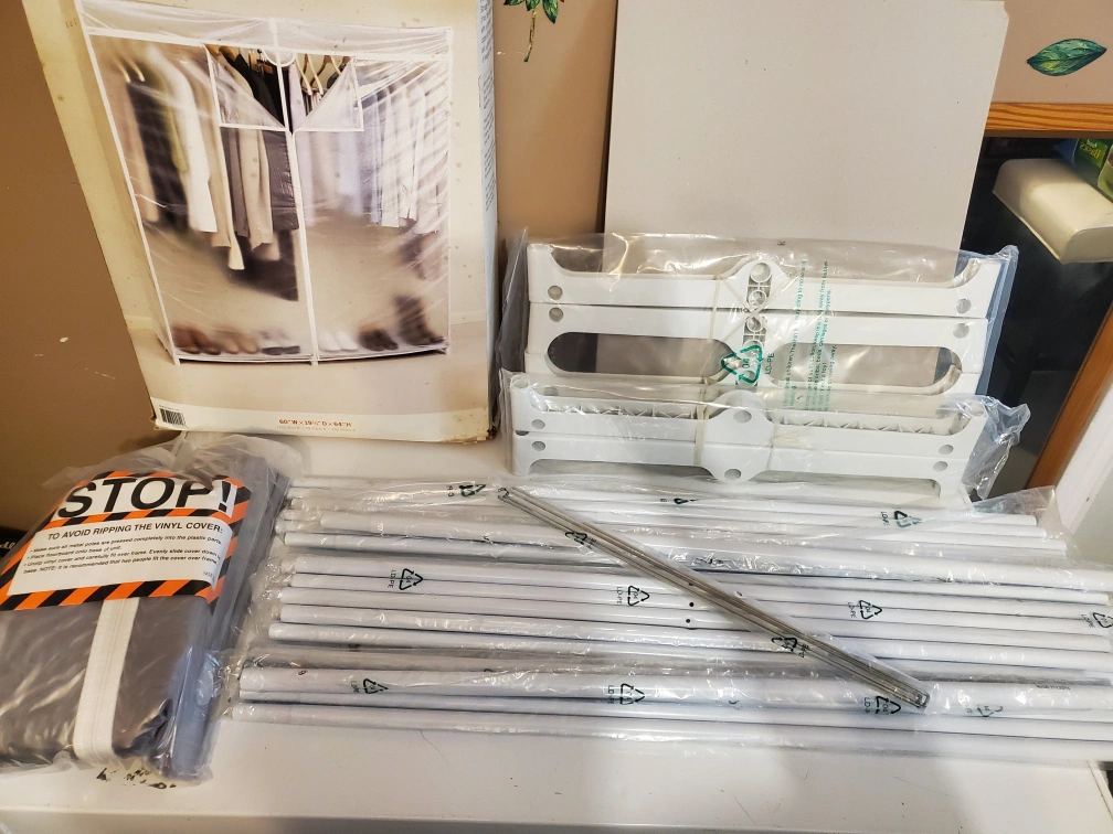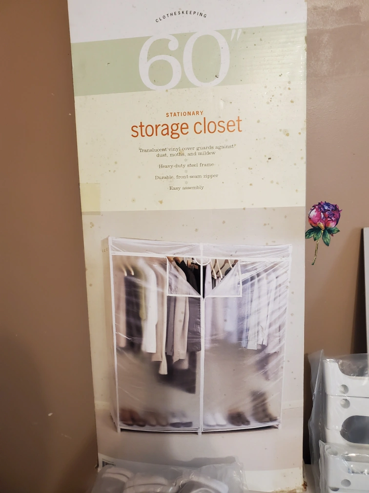 Martha Stewart storage closet Translucent vinyl cover guarding against dust mold and mildew. heavy duty steel frame, durable front seam zipper brand new in package taken out Of box to show all pieces are included. 60 inches wide 19 and a half inches deep 64 inches Delivery available pickup preferred