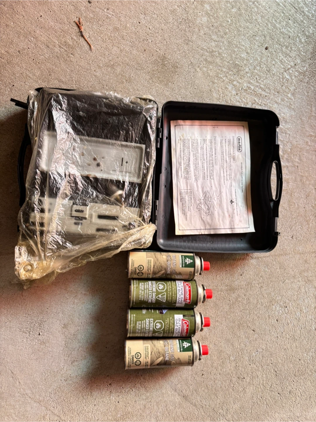 Selling a Martin portable BBQ, perfect for camping or small spaces! It comes with a carrying case and four Coleman butane gas canisters so you can get grilling right away. For all of them only $30 cash and must be able to meet.