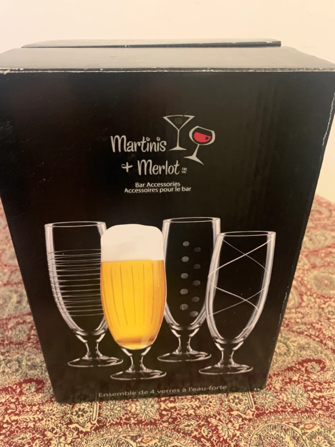 133Selling a set of bar accessories from Martinis + Merlot! It includes four glasses with unique designs for your home bar. The set is brand new and comes in its original box, ready to be enjoyed or gifted!
