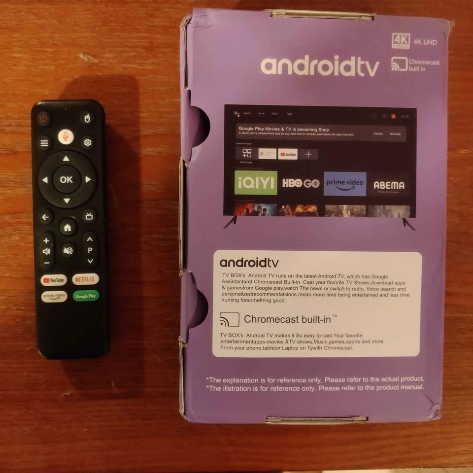 Awesome Android TV Box! runs Android 14.0. Comes with 2GB RAM and 16GB storage. Chromecast built-in so you can cast from your phone or tablet. Works with Ok Google for voice commands. Fast Wi-Fi and TV controls. Can watch YouTube, Netflix, Prime Video, Hulu, HBO Now, ESPN, Spotify, and more. Super easy to get all your favorite shows and movies.