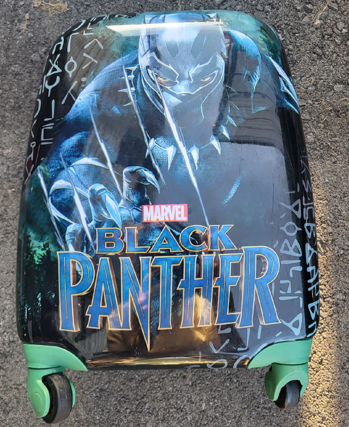 Selling a Marvel Black Panther kids rolling suitcase. It features a Black Panther design with green accents. Perfect for your little one's travels.