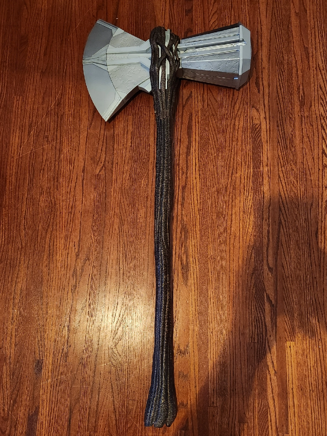 62Selling a replica of Thor's Stormbreaker axe! It's in great condition and would be perfect for a collector or cosplayer. The axe has a detailed design and sturdy construction. It would look great on display or as part of a costume. Electronic lights and sounds are working perfectly.
