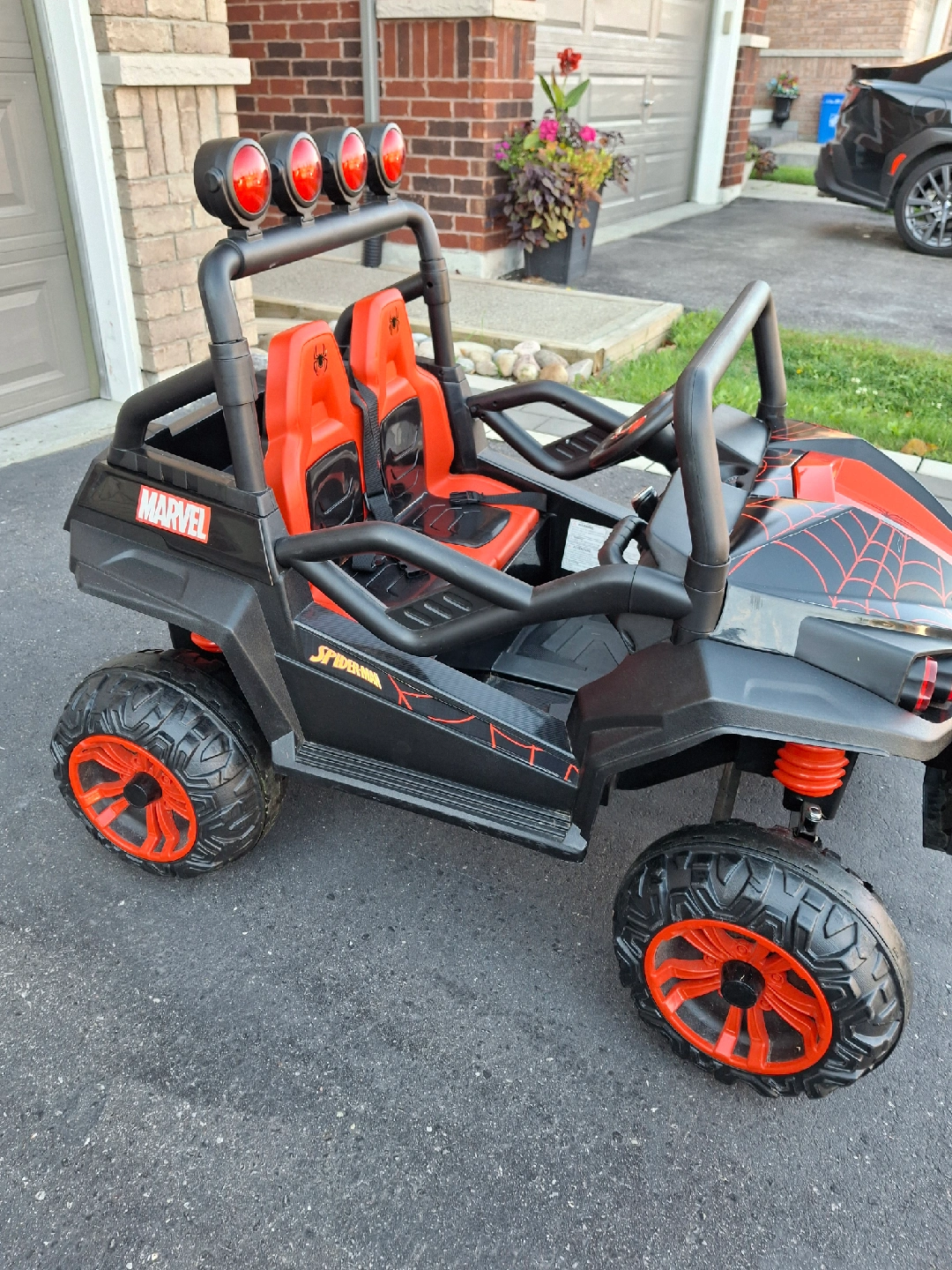 Selling a Marvel Spider-Man ride-on car! It's in great condition and ready for a new little driver. Features a cool Spider-Man design in black and red, perfect for any young fan of the web-slinger